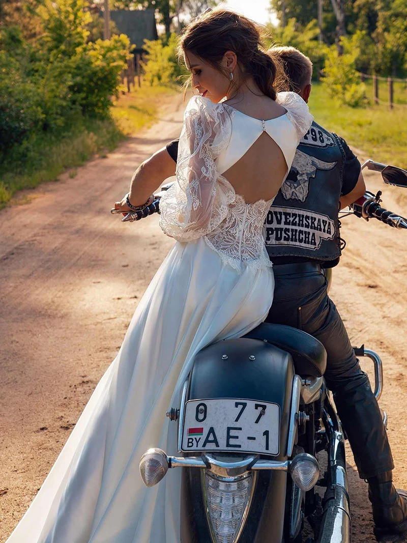 Женское атласное свадебное платье LORIE, ТРАПЕЦИЕВИДНОЕ кружевное п...