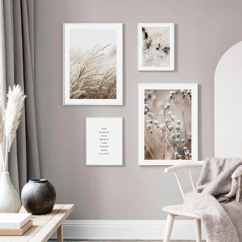 Растительный пейзаж, постер из коровьей травы, настенный художественный холст, скандинавский принт, картина, скандинавский декоративный Декор для дома