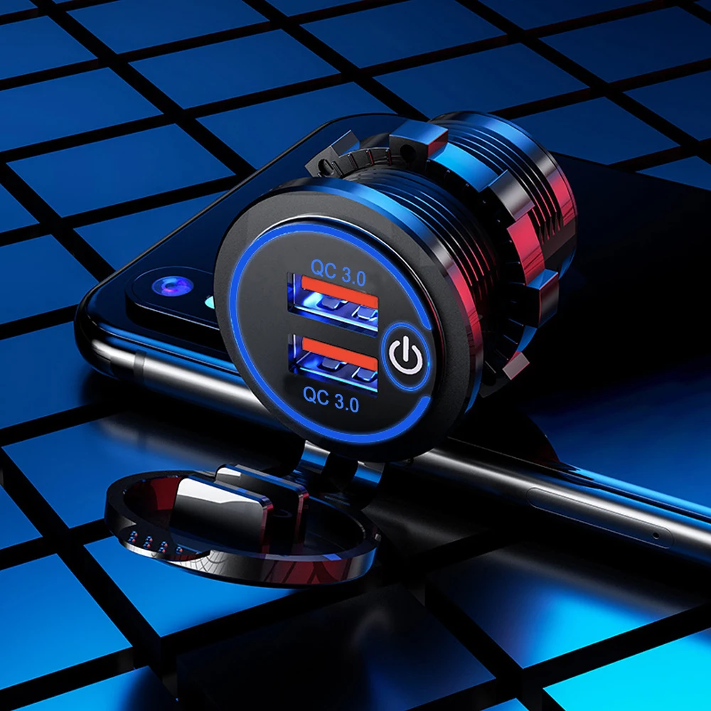 Автомобильное зарядное устройство 12 В, USB 24 в 36 Вт, QC 3,0, 2 USB, автомобильное зарядное устройство, сенсорный выключатель, водонепроницаемый, универсальный автомобильный Грузовик, зарядное устройство для телефона