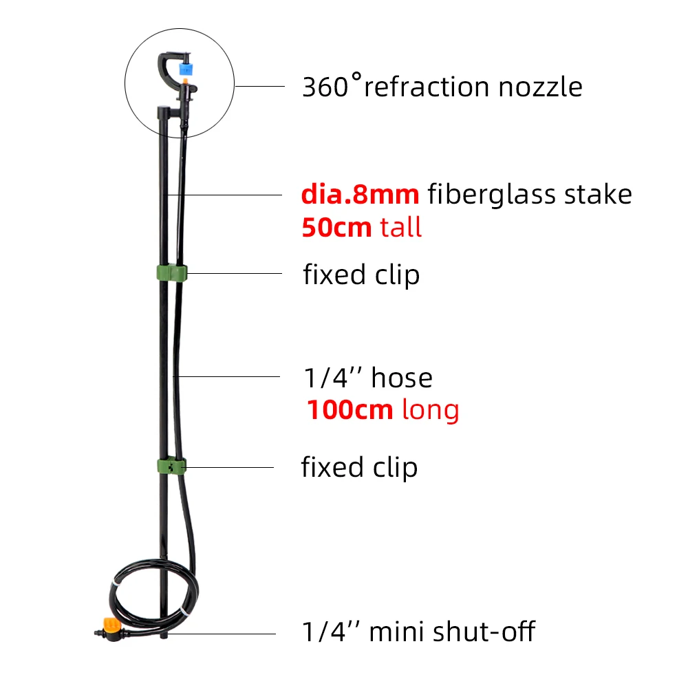 Разбрызгиватели MUCIAKIE, 180 градусов, на 50 см, из черного стекловолокна, шланг 1 м, система полива сада, насадки высотой 19,6 дюйма, 10 шт.