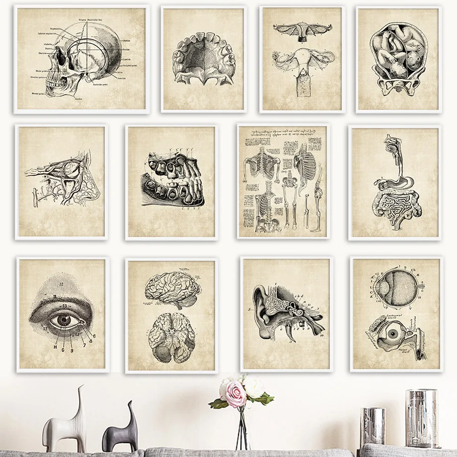 Настенный художественный холст для живописи анатомический Скелет Nordic Плакаты и принты Винтаж настенные картины для больнице офисный Декор