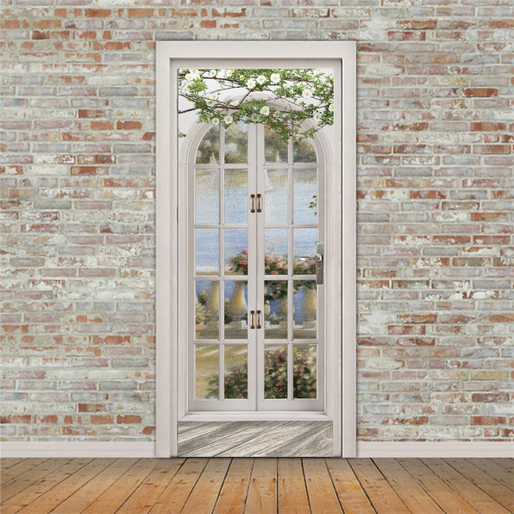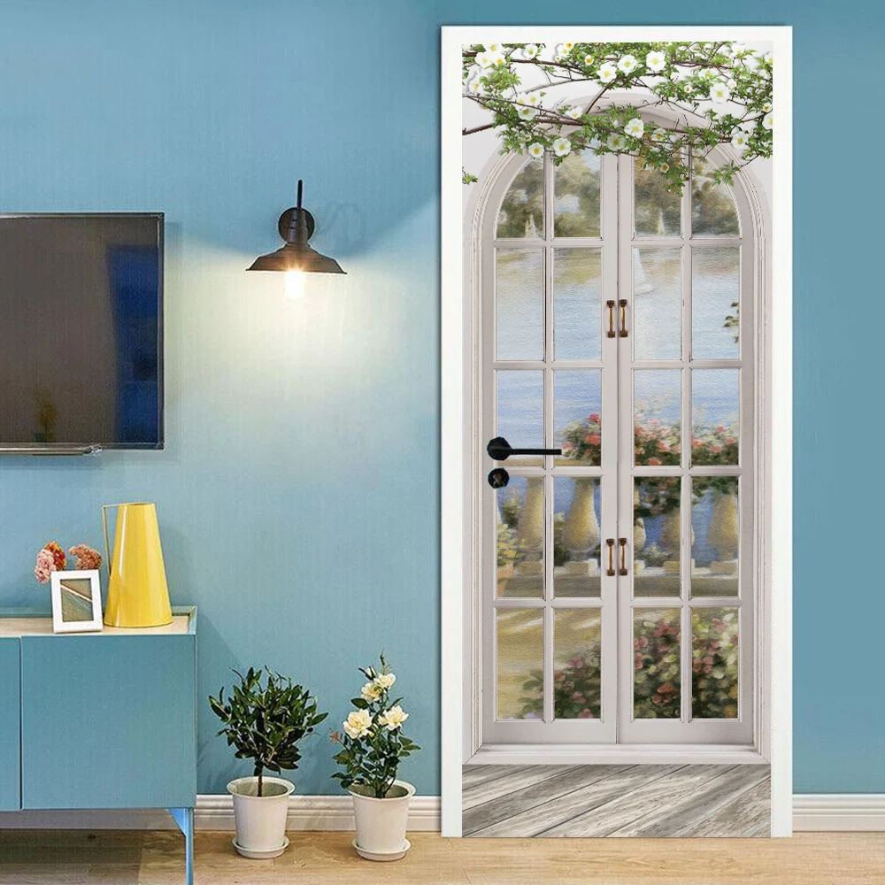 Наклейка на дверь из искусственного стекла, окна, 3D принт, Зеленый пейзаж, стиль фермерского дома, ремонт, Виниловая наклейка, наклейки, декор для гостиной