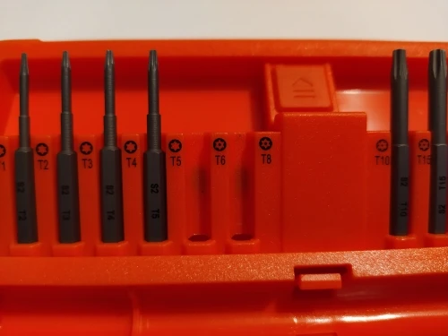 набор не плохой, почти все отлично. сама ручка длинная почти 13см, поэтому может быть не удобно ее вытаскивать. приходится поддевать битой. гибкий вал болтается в держателе. мне это не важно, брал из за удлиненных бит и корпуса для них.
