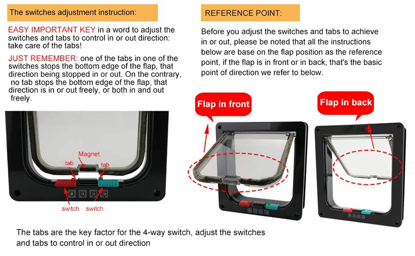 Характеристика:Запираемый, безопасность pet guardЛегко устанавливается, просто фиксируется винтомПодходит для всех дверей, заборов, ограждений, панелейПодходит для кошек и маленьких средних собак4-полосная лайн Лок;Внешнее уплотнительное кольцо может предотвратить попадание дождя и воды;Может уменьшить потерю и позволить кошкам перемещаться внутрь и из тишины.Примечание:1. Из-за ручного измерения размер может иметь погрешность в 1-3 см2. Из-за различных мониторов цвет может отличаться3. Из-за длительной доставки товар может быть поврежден при транспортировке, если товар поврежден, пожалуйста, свяжитесь с нами, прежде чем оставить отзывы, спасибо за понимание