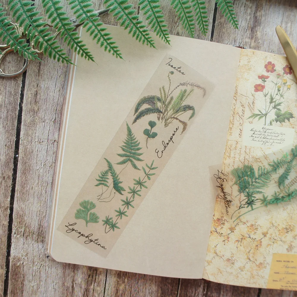 Прозрачные наклейки с натуральным зеленым папоротником, в виде лист...