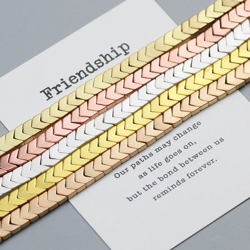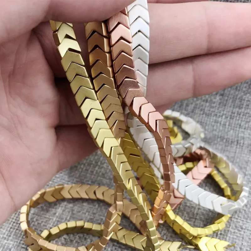 WLYeeS Польша матовые золотые Серебрянные треугольные стрелки, покрытые натуральными гематитовыми бусинами 6 мм 95 шт/прядь, свободные бусины для самостоятельного изготовления ювелирных изделий