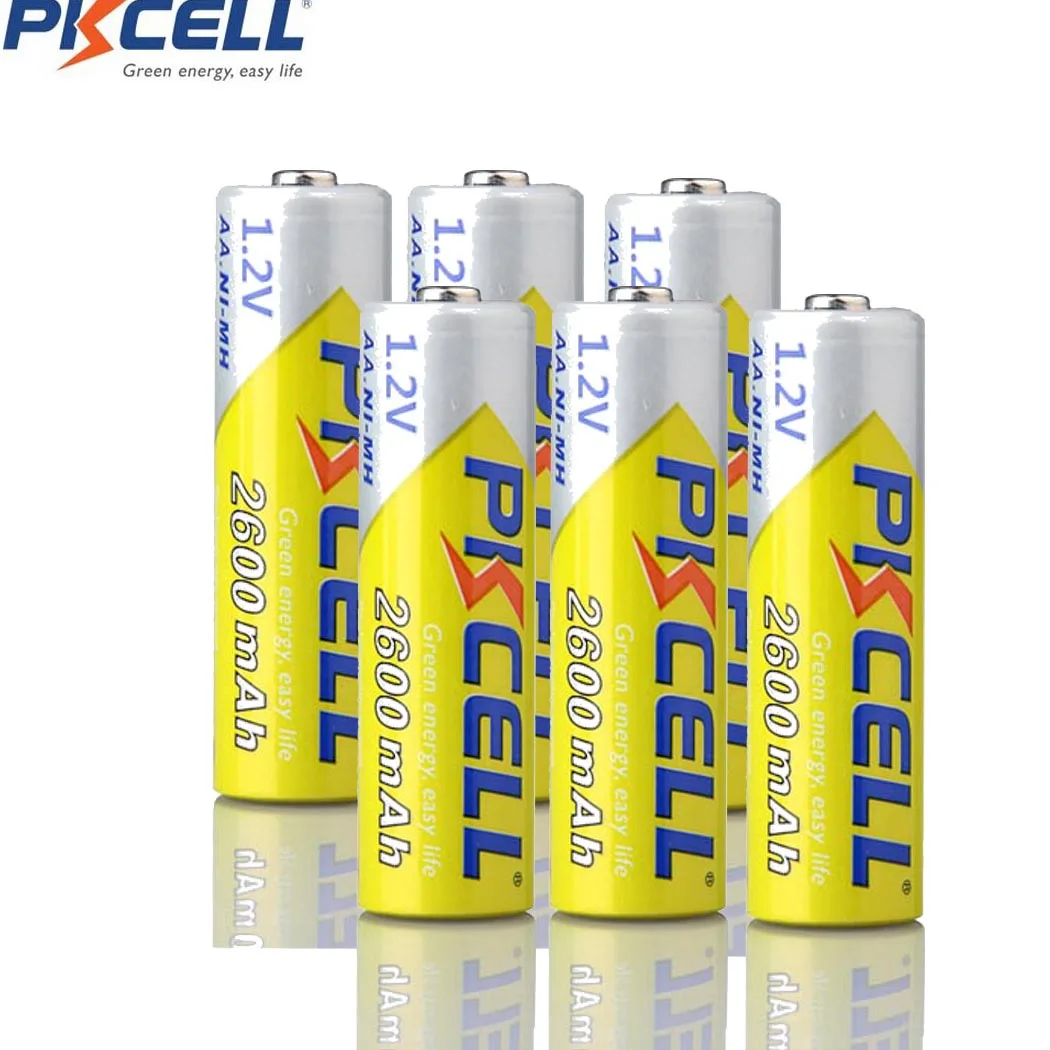 Батарейки PKCELL AA Ni-MH 2600 мАч 1,2 в AA 2A, 6 шт., аккумуляторные батареи для цифровой камеры