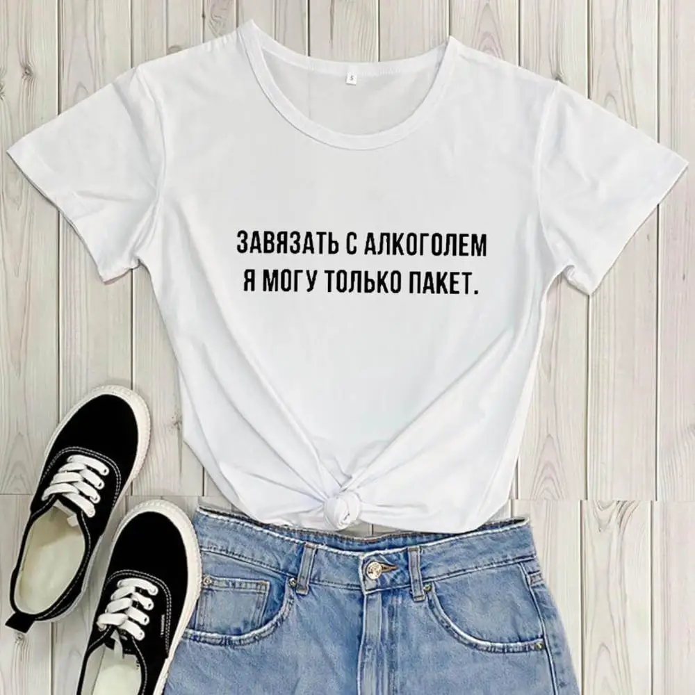 Новое поступление, летняя женская смешная футболка из 100% хлопка с надписями на русском языке, женская футболка с милым слоганом