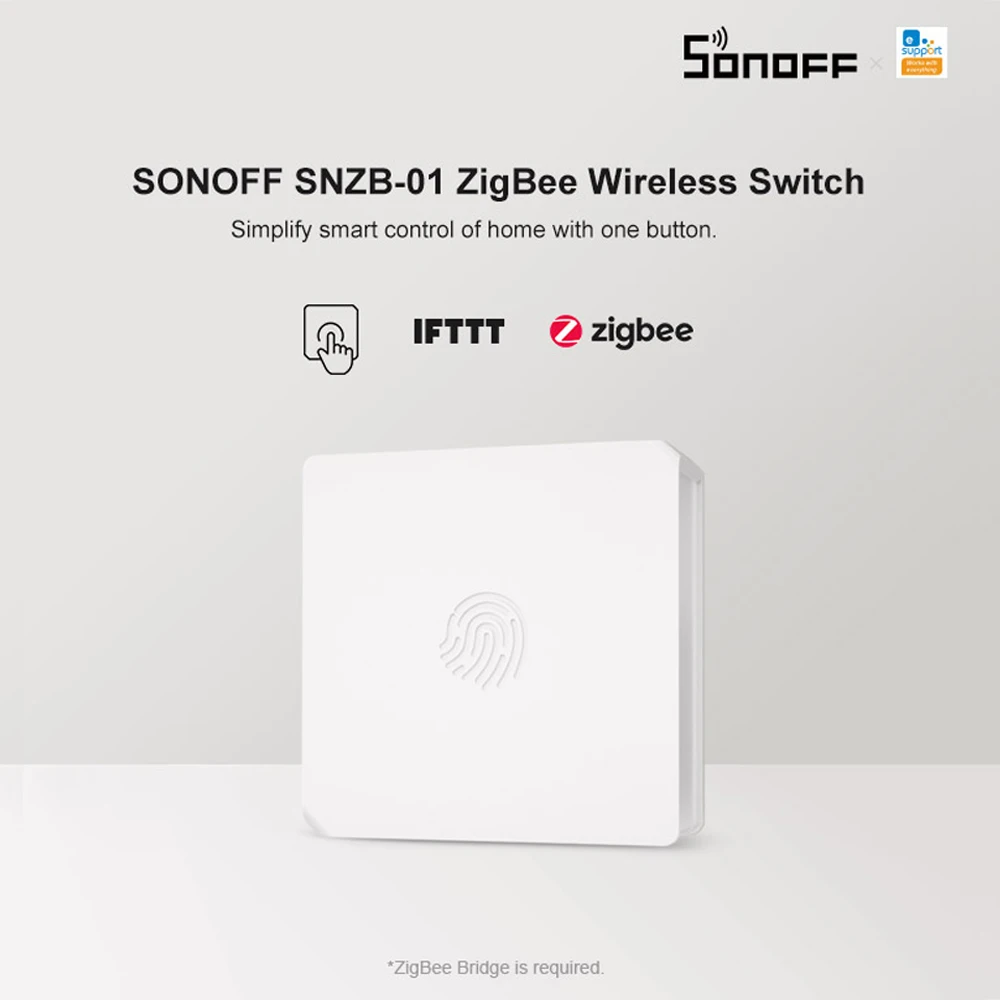 Беспроводной переключатель SONOFF SNZB-01 Zigbee, Умный домашний переключатель с уведомлением о низком заряде батареи, работает с приложением e-WeLink, работает с SONOFF ZBBridge IFTTT