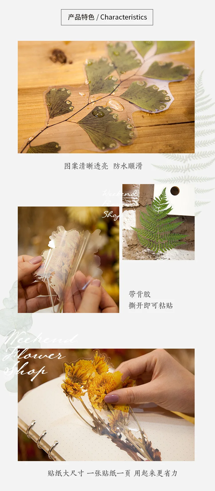 Наклейки с листьями и цветами, 6 листов, большой размер, декоративные наклейки для планера, дневника скрапбукинга, сделай сам