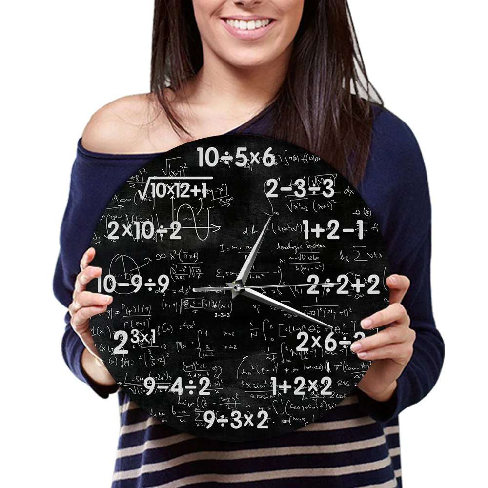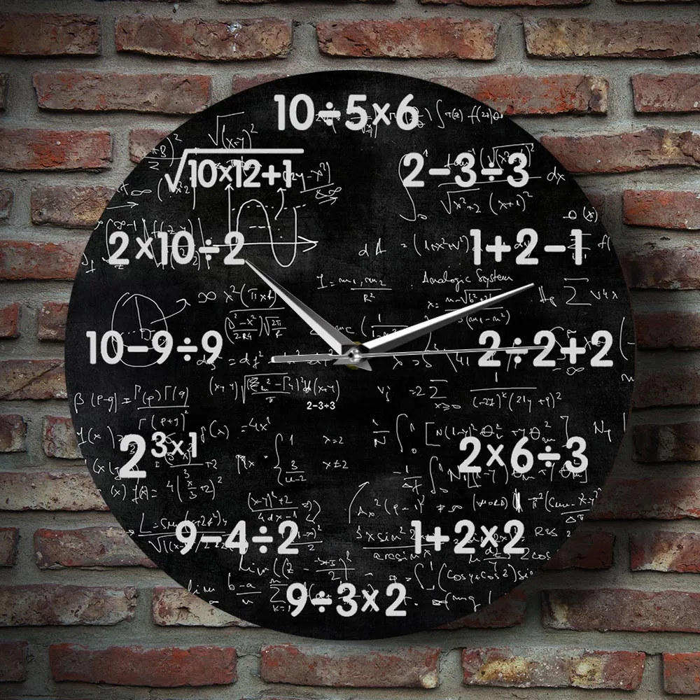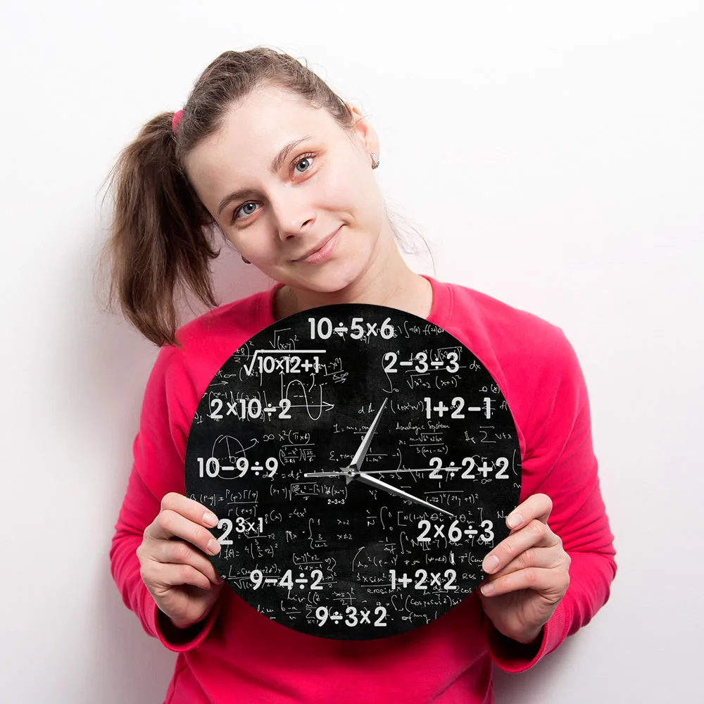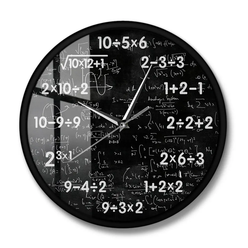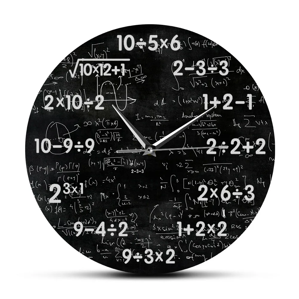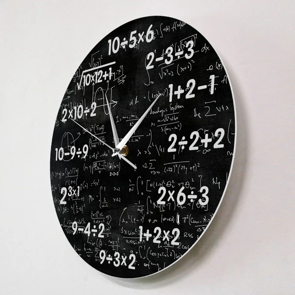 Часы с математическими черная доска бесшумные настенные часы Математика классная комната, для стен знак математические уравнения настенные часы Математика Nerd учителя подарок