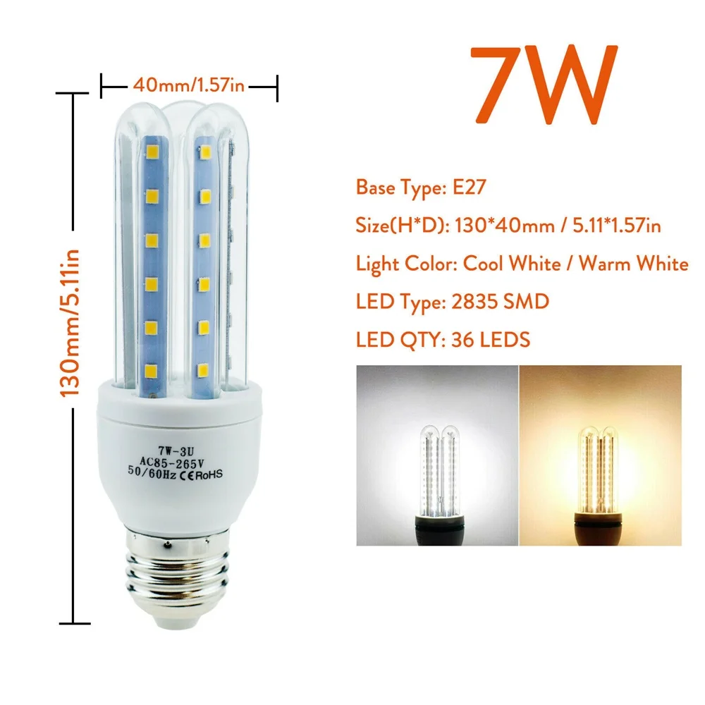 Энергосберегающие E27 светодиодный кукурузный светильник лампочки 3 Вт 5 Вт 7 Вт 9 Вт 12 Вт U труба флуоресцентные неоновые потолочные светильник s 220V 110V домашних ламп 360 светильник Инж