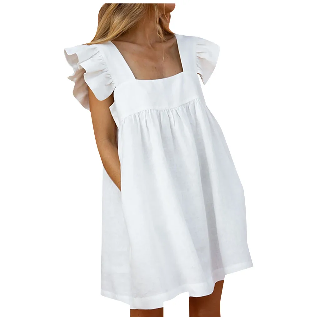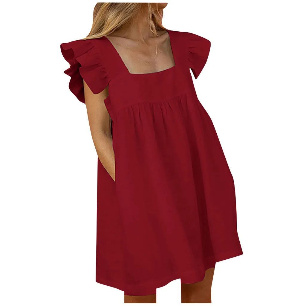Женское летнее платье миди с коротким рукавом и карманами Элегантный квадратный вырез