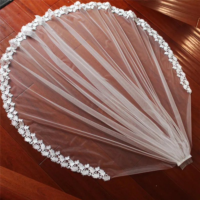 Однослойная кружевная свадебная фата без гребня, 3 метра, крышка дл...