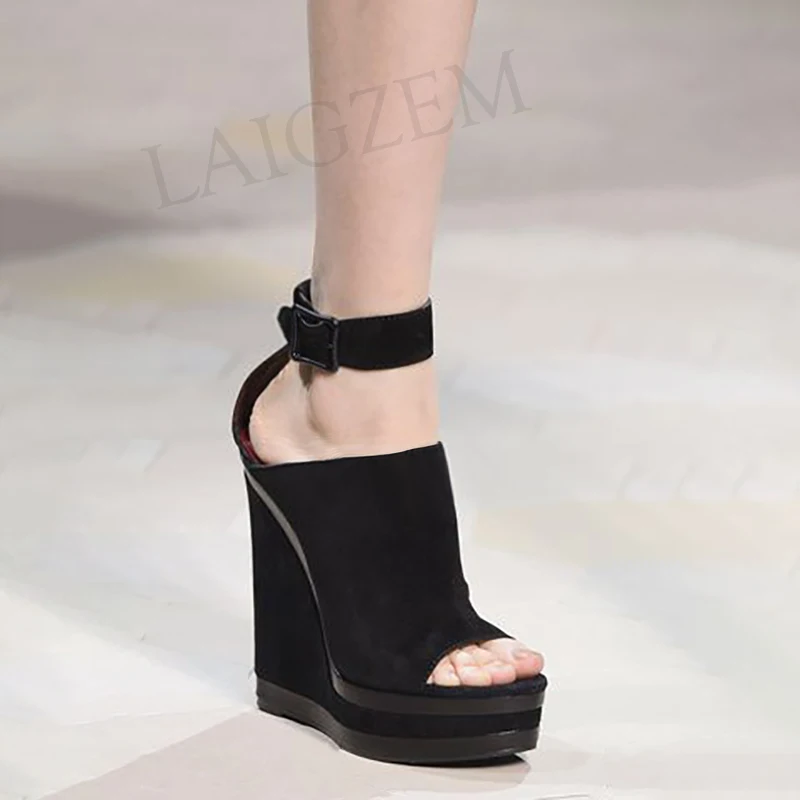 SEIIHEM/женские туфли-лодочки на танкетке; Босоножки из искусственной замши с открытым носком и ремешком на щиколотке; Женская обувь; Большие размеры 43, 44, 47, 50, 52