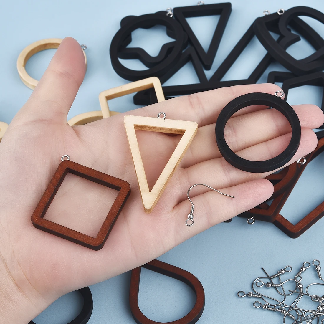 Деревянная подвеска с открытой рамкой, для ювелирных изделий из смолы, эпоксидной смолы, УФ, прессованный цветок, 12 шт.