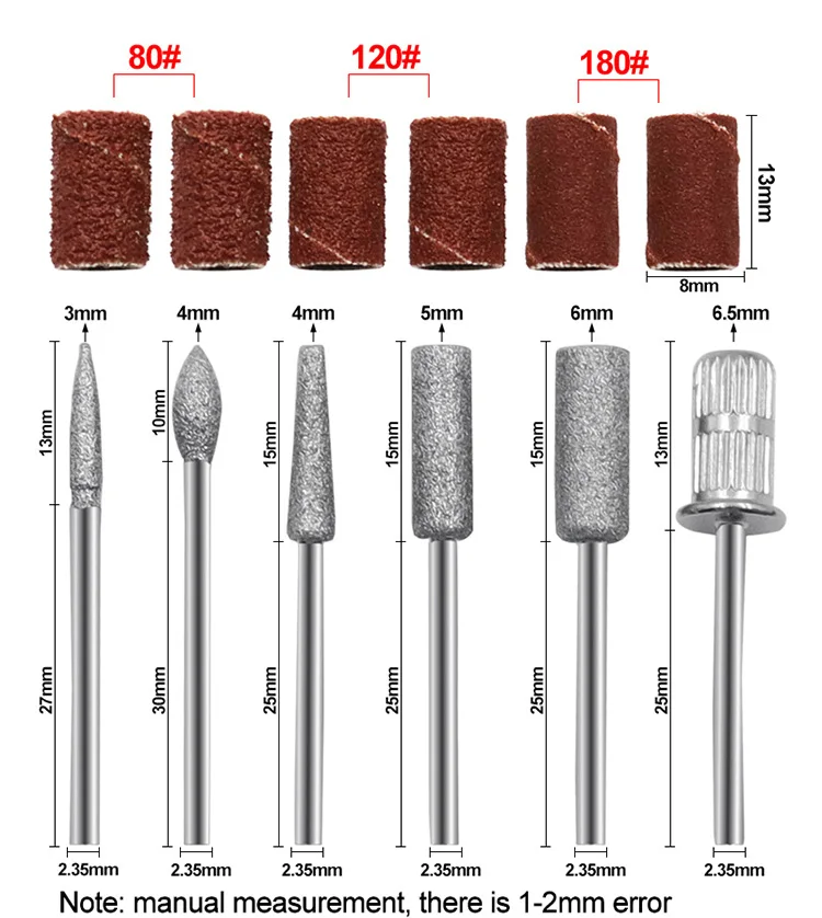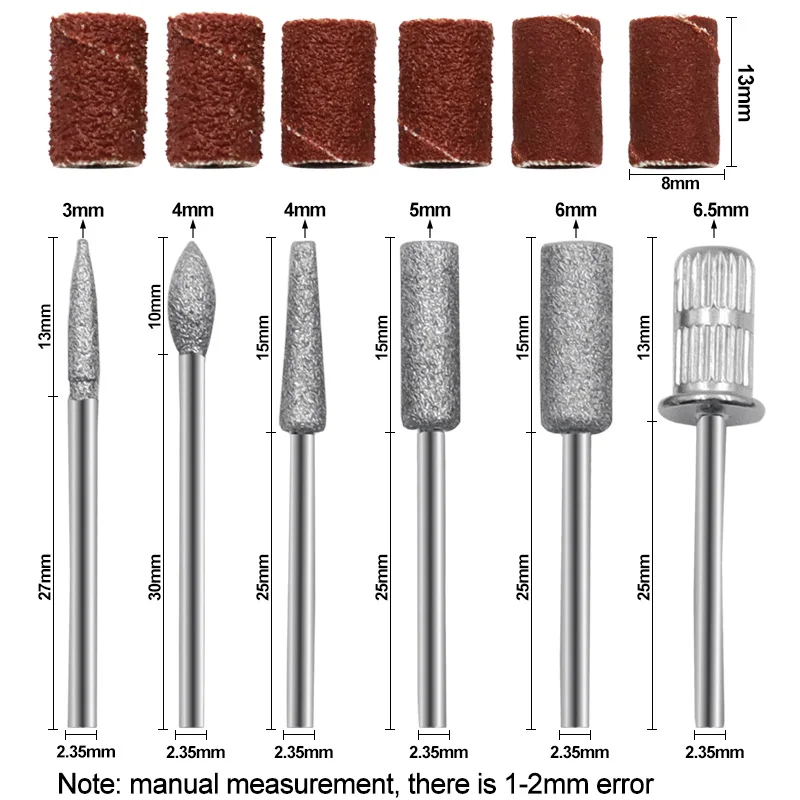 Набор насадок для электродрели, комплект из 12 сменных насадок с кварцевым абразивным рисунком, оборудование для нейл-арта