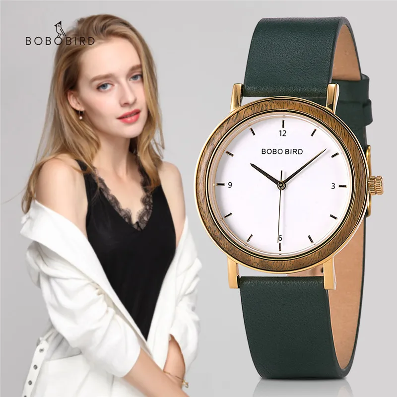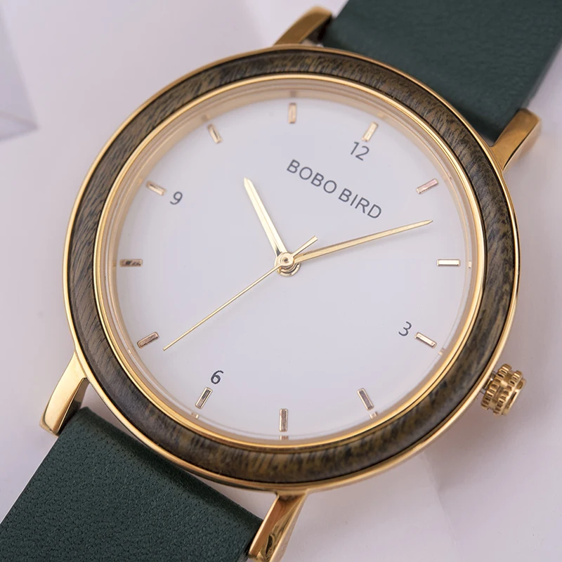 Часы BOBO BIRD Top женские наручные, Роскошные зеленые, из сандалового дерева, золотистые, подарок для жены на день рождения