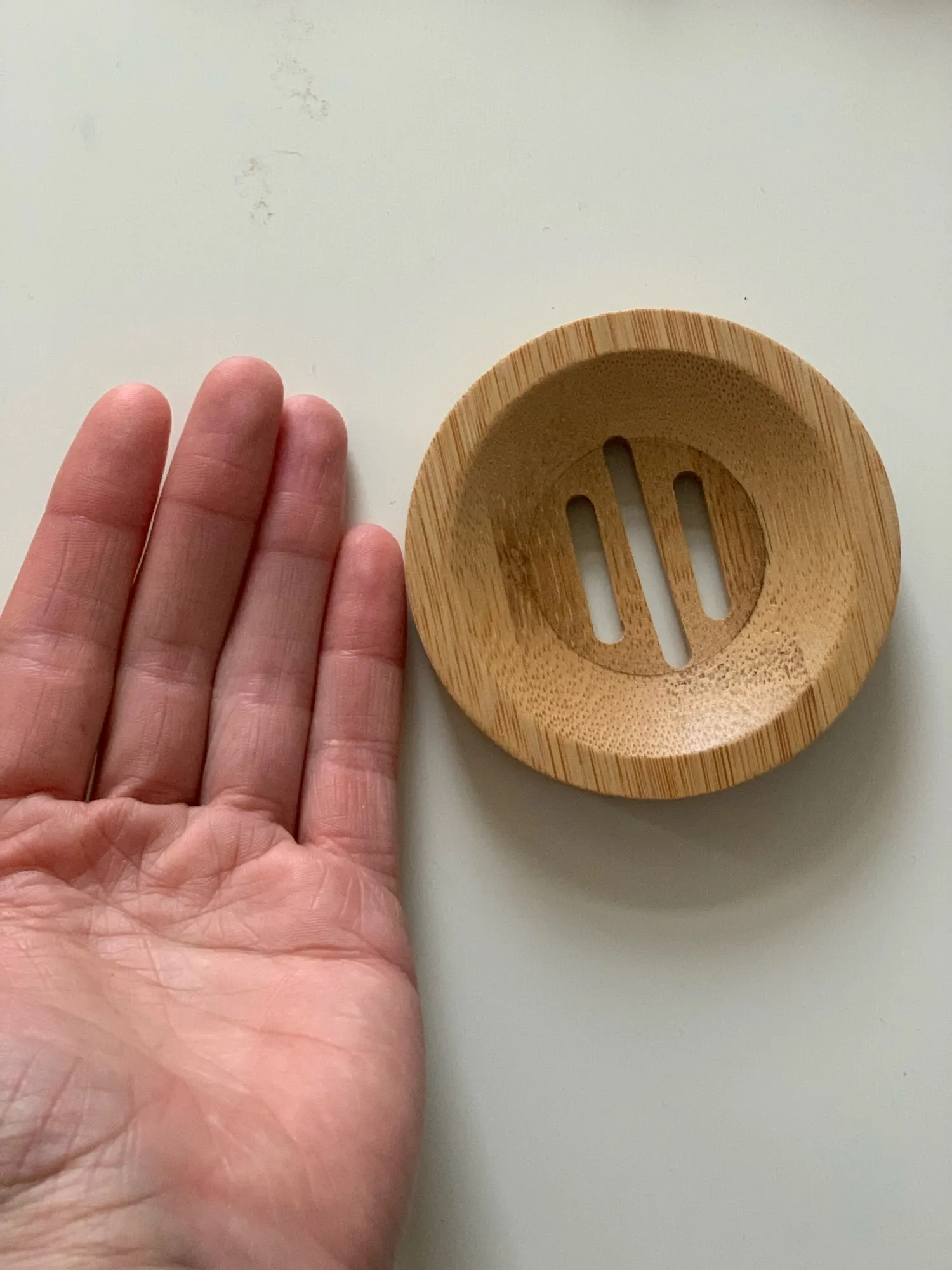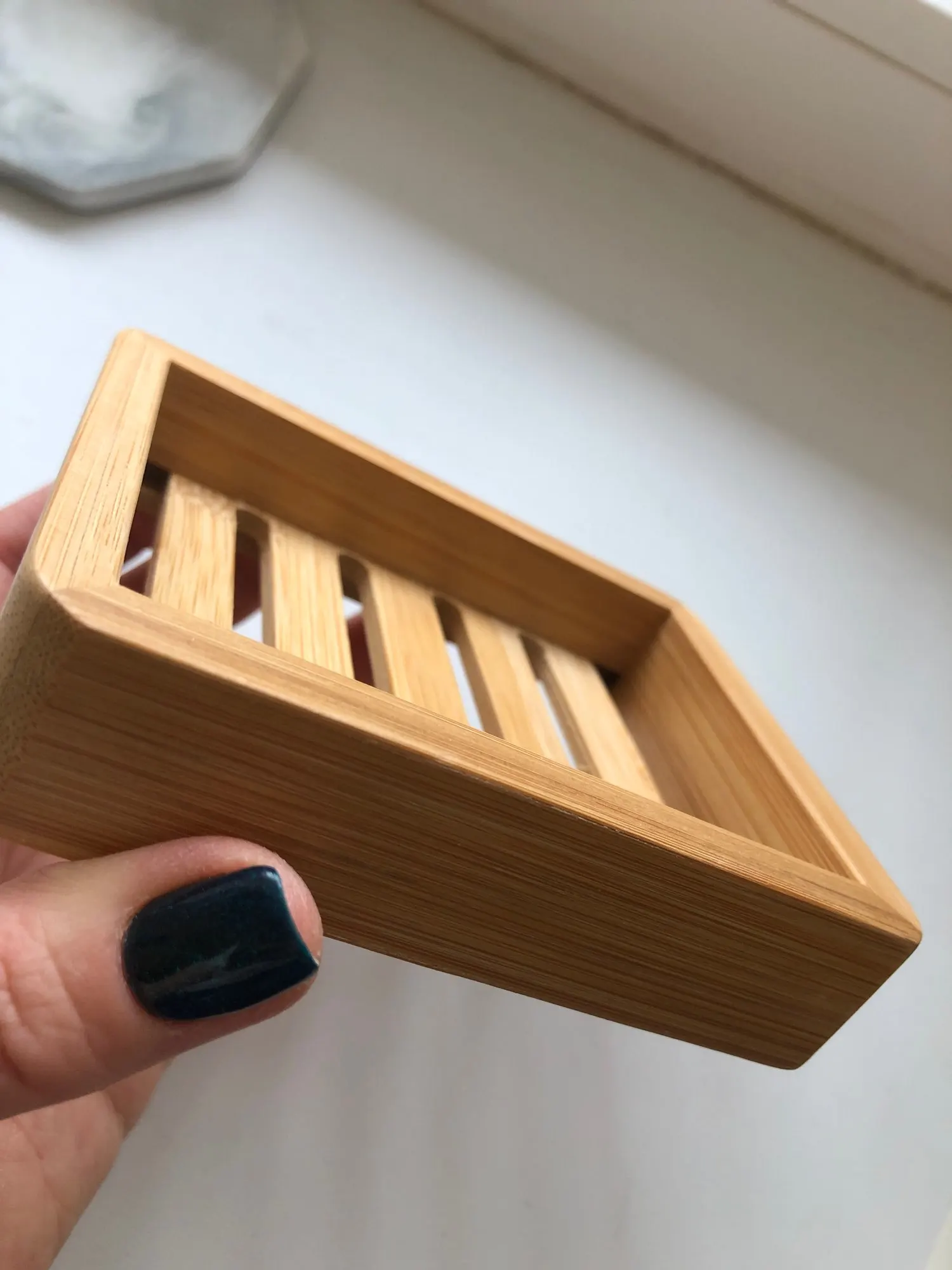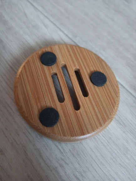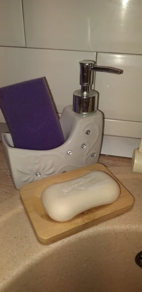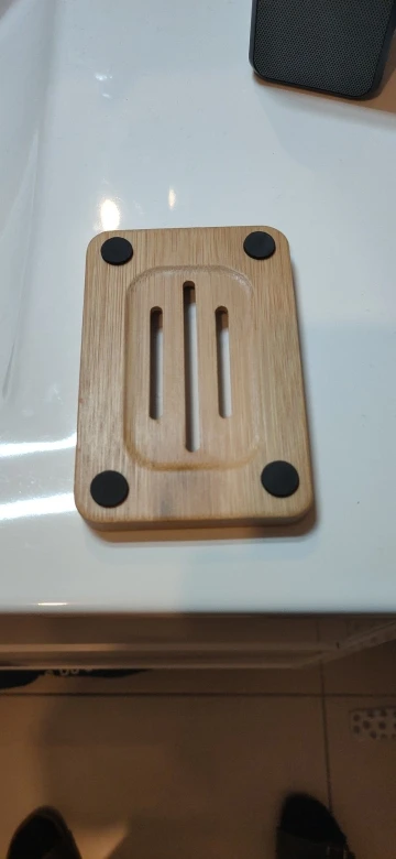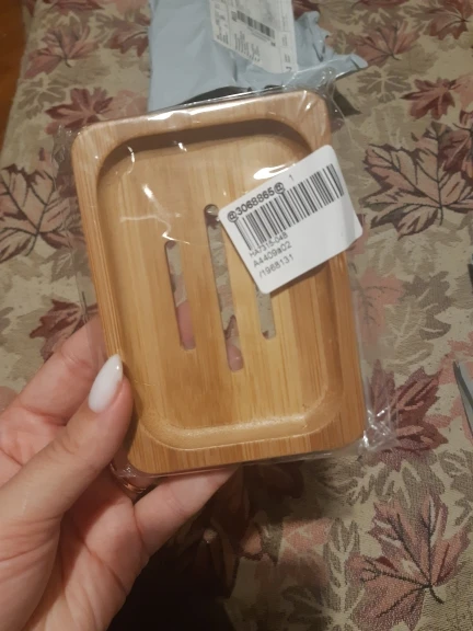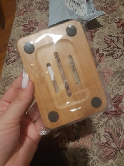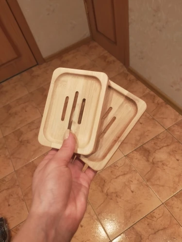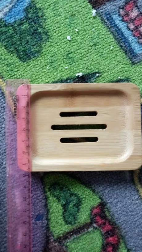 Очень довольна. Мыльница не большая, аккуратная. Посторонних запахов нет. Есть минусы: ждала 3 месяца!!! Также есть брак с внутренней стороны, для меня не критично. После того, как я хорошо помыла её мягкой щёткой с мылом - мыльница стала облезать!