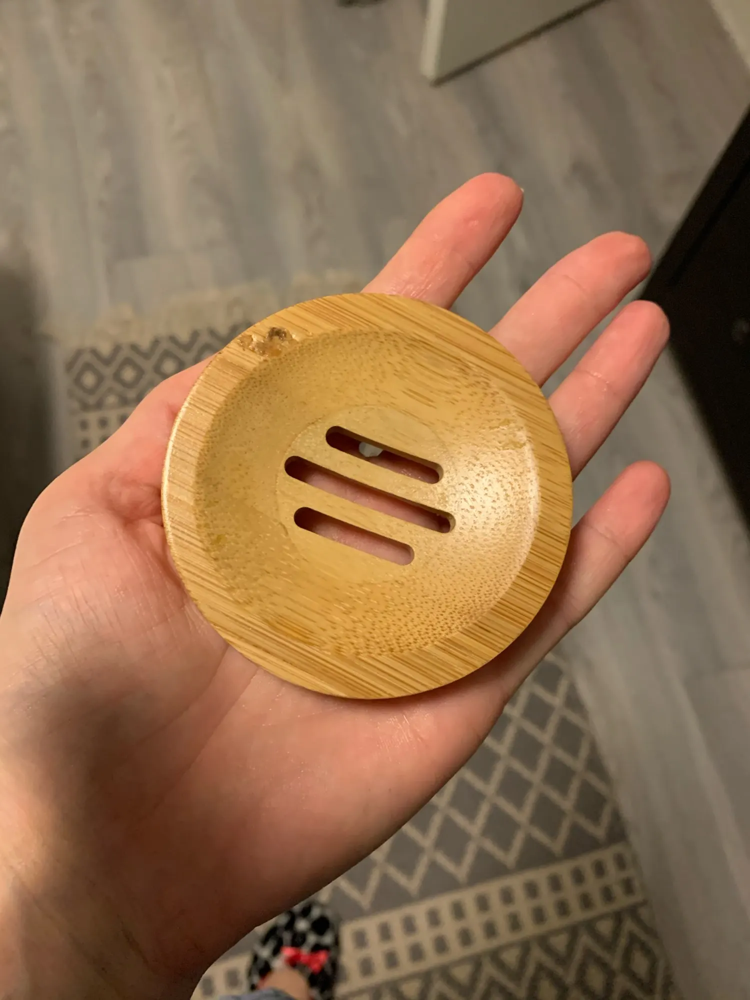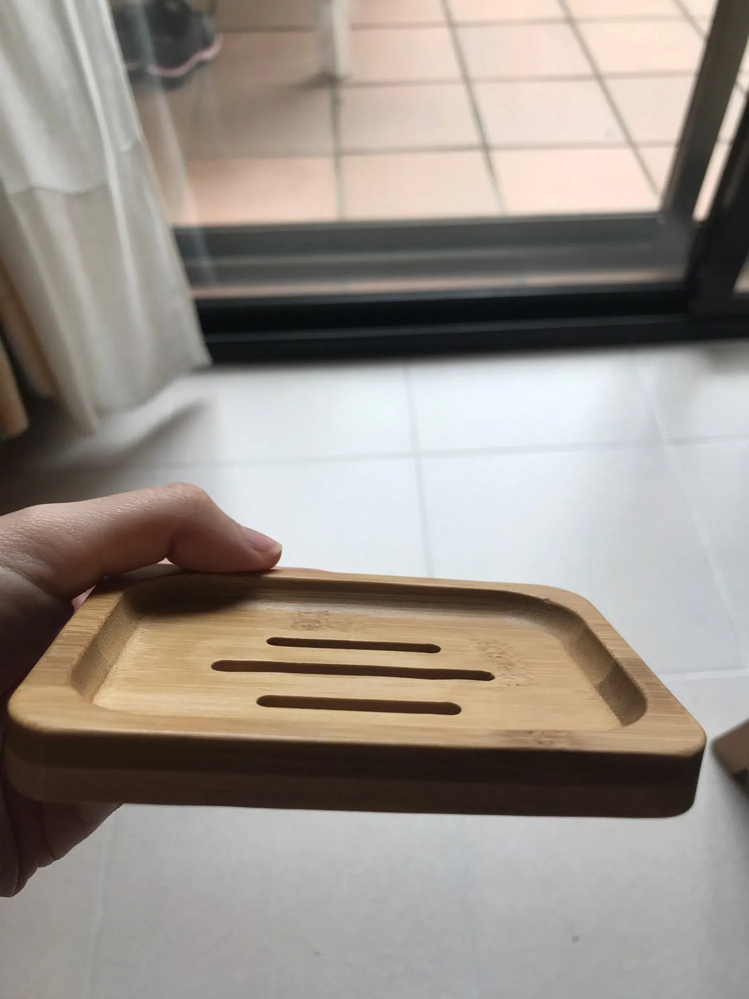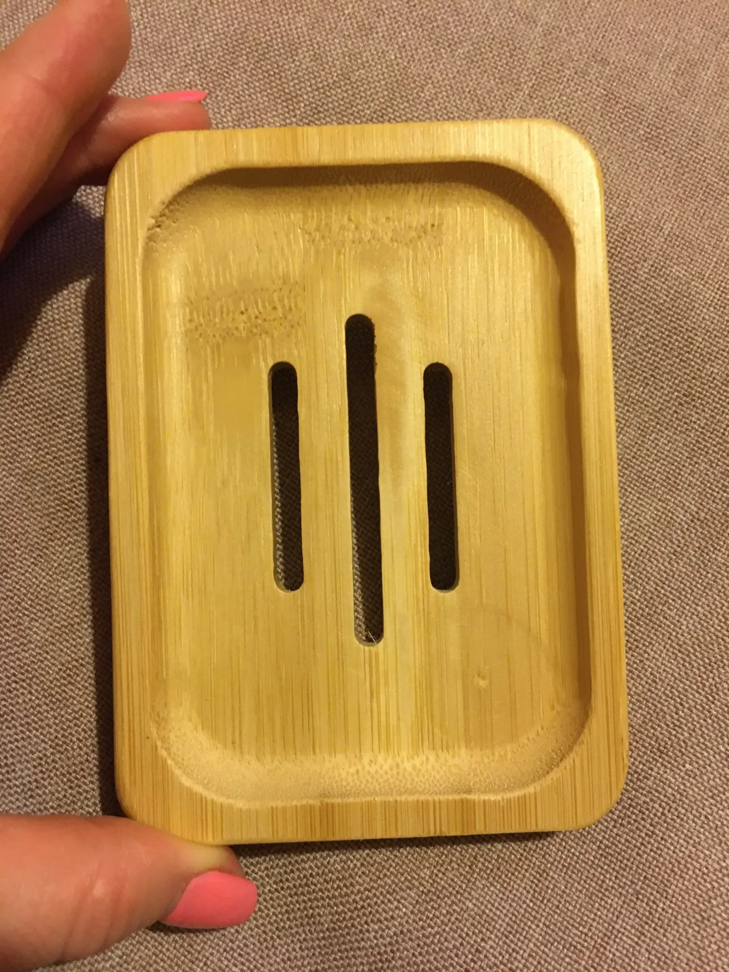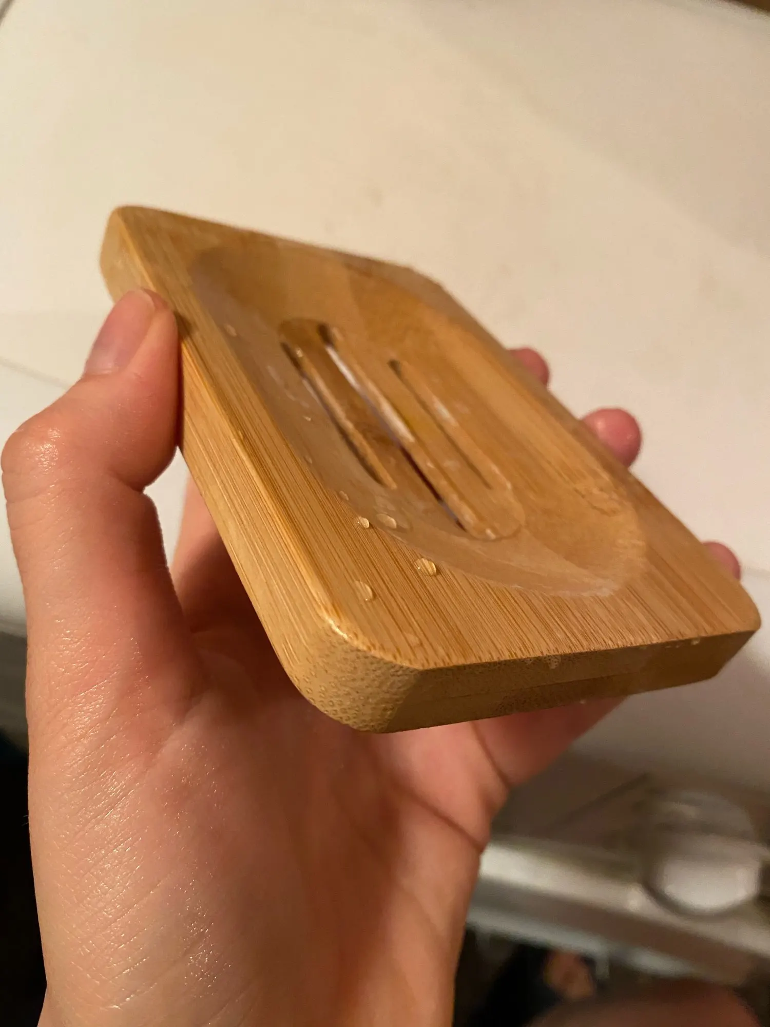 Очень довольна. Мыльница не большая, аккуратная. Посторонних запахов нет. Есть минусы: ждала 3 месяца!!! Также есть брак с внутренней стороны, для меня не критично. После того, как я хорошо помыла её мягкой щёткой с мылом - мыльница стала облезать!