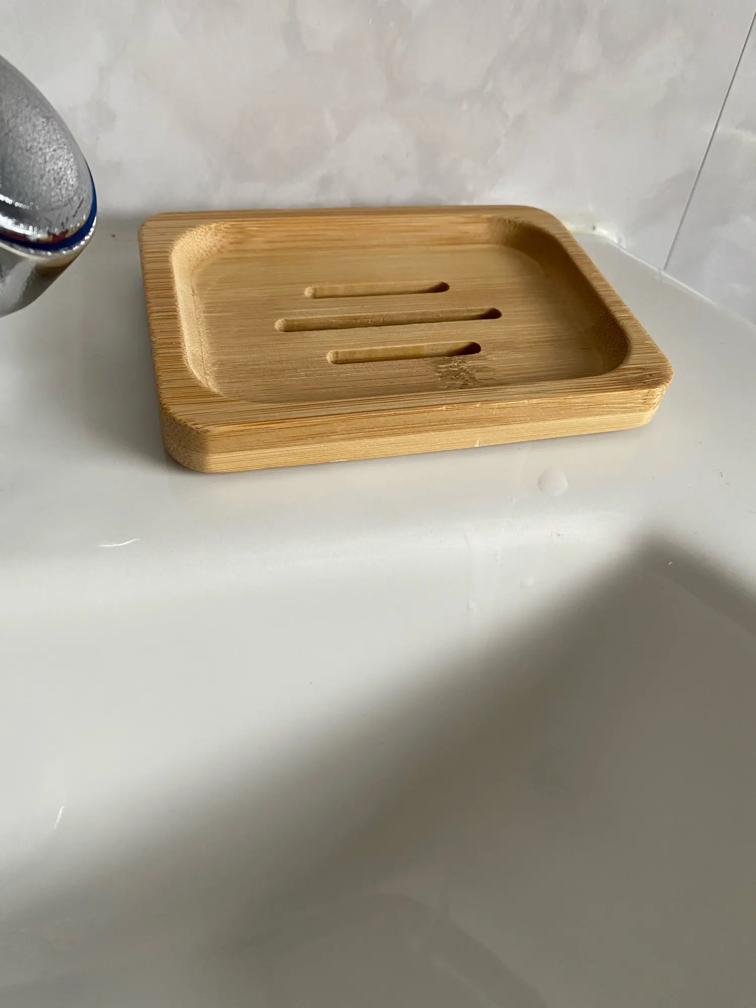 Мыльница сделана аккуратно. Из минусов - нет нижнего поддона, вся вода стекает на стол.