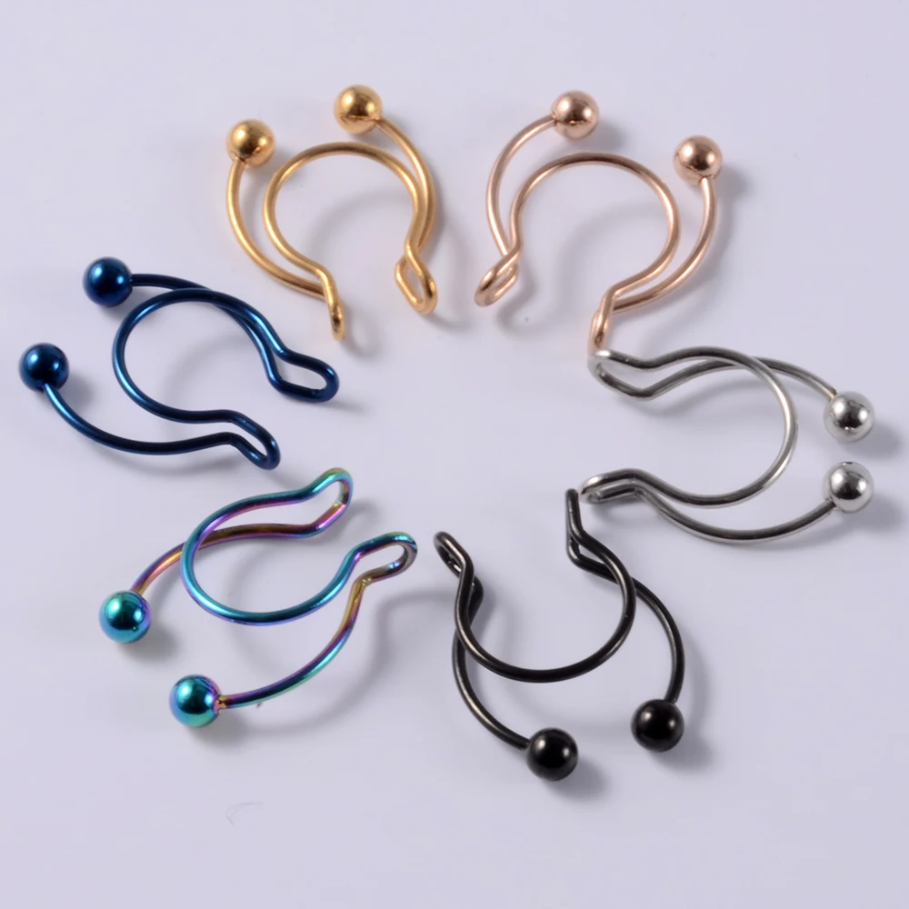 Кольцо для носа, имитация пирсинга, из нержавеющей стали, 1 шт.
