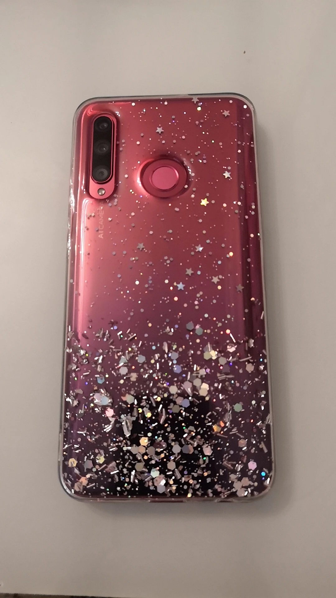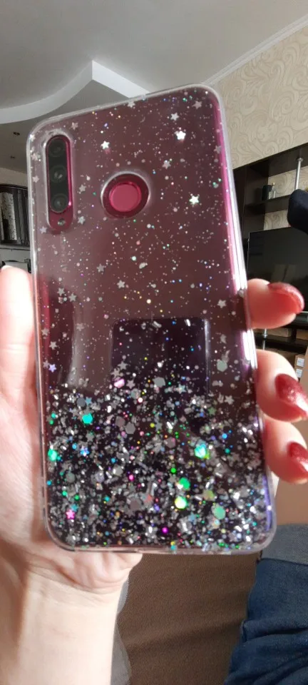 Дошло быстро. Блёстки статичные, я думала будут плавать внутри чехла. Но смотрится хорошо.