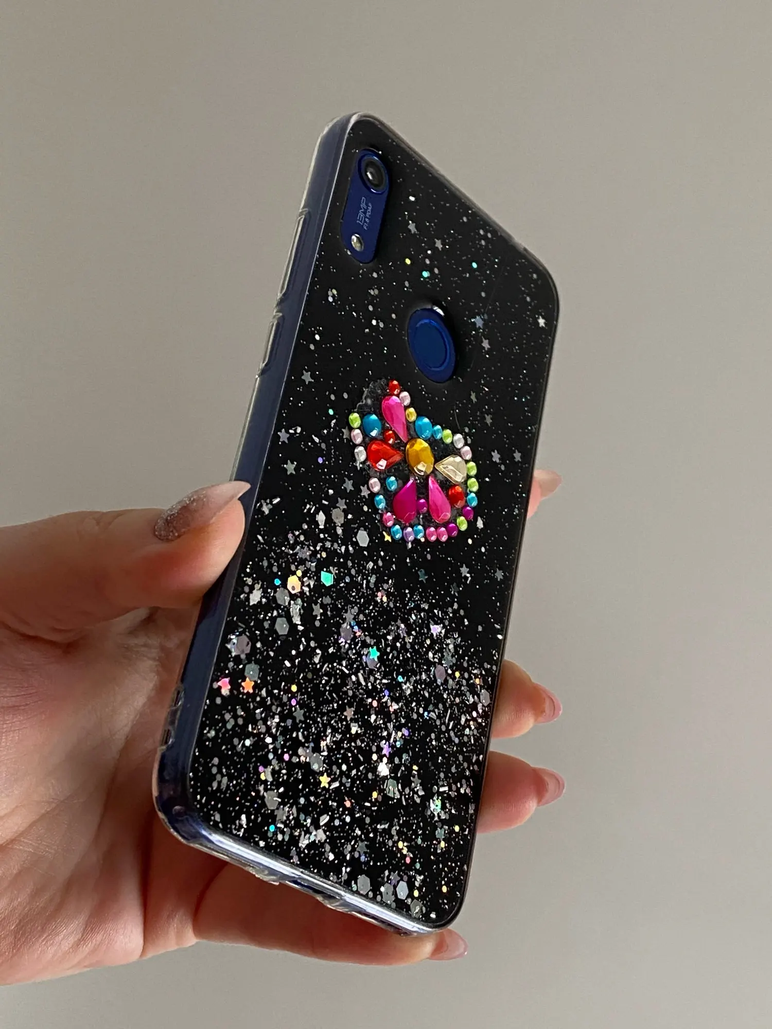Сделан немного неаккуратно, блестки торчат над поверхностью, но на внешний вид не влияет. Телефон встал идеально, все разъемы и кнопки на месте. Пришел в рекордные сроки: 27 декабря сделан заказ, 9 января пришел на почту. Всем очень довольна