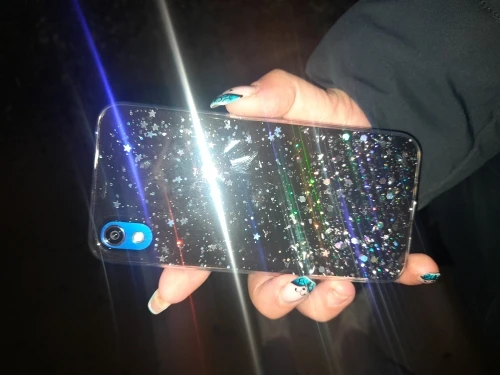 Блёстки и звёздочки не плавают, но как же божественно блестят! Очень крутой плотный чехол с искристым наполнением, идеально садится на телефон и выглядит как бриллиантовое небо. Шёл три недели, продавец контактный котик, умочка и молодец. Всё отслеживалось, пришло в целости. Я в восторге.
