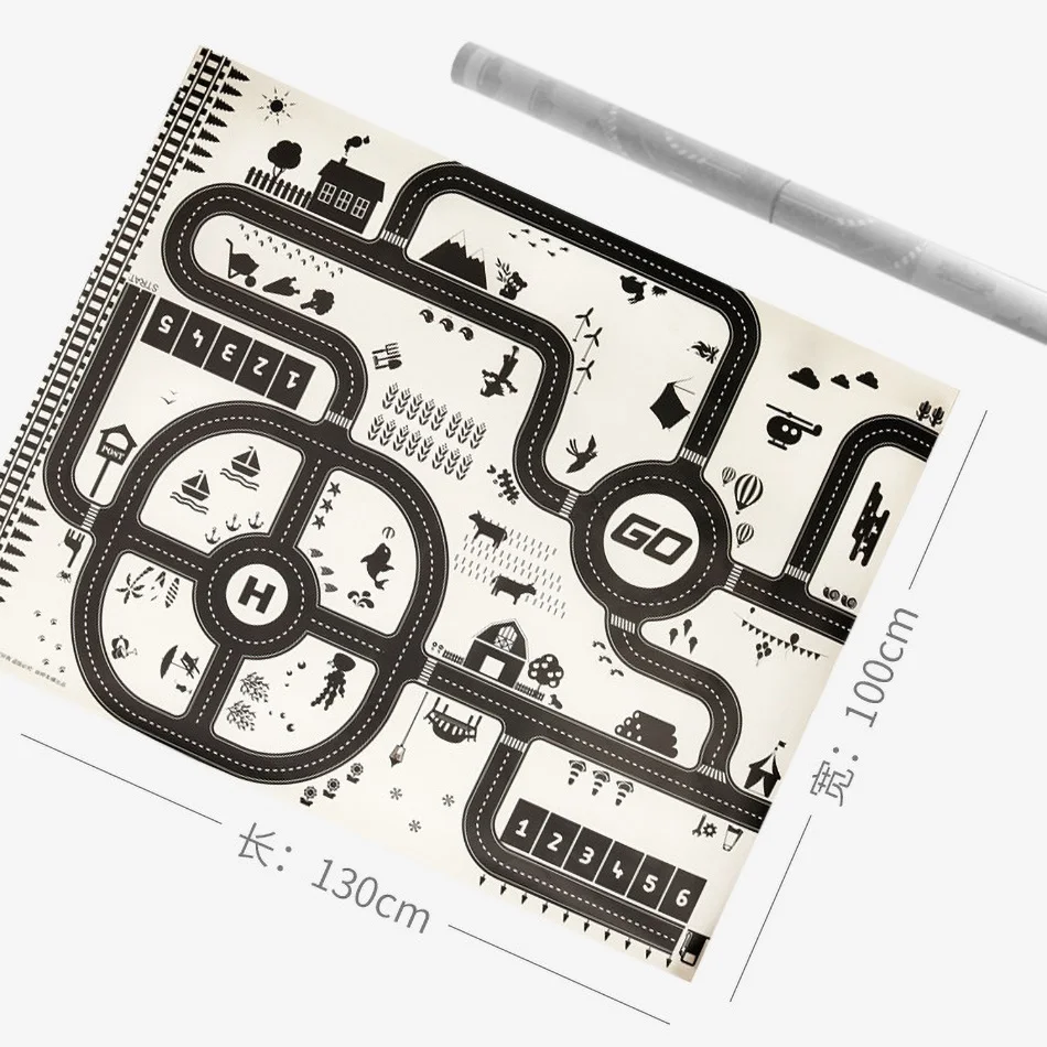 130*100 скандинавский Черный Белый детский игровой коврик с картой, складной детский бумажный дорожный ковер, детский коврик для спальни, детский пол