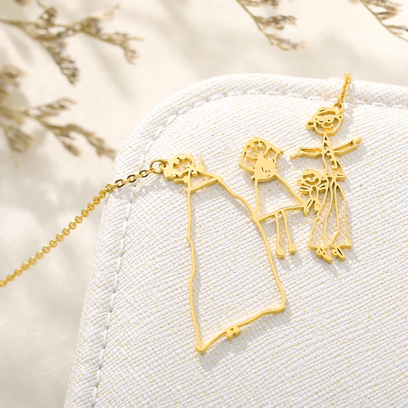 Индивидуальное детское ожерелье для рисования для женщин, серебряна...