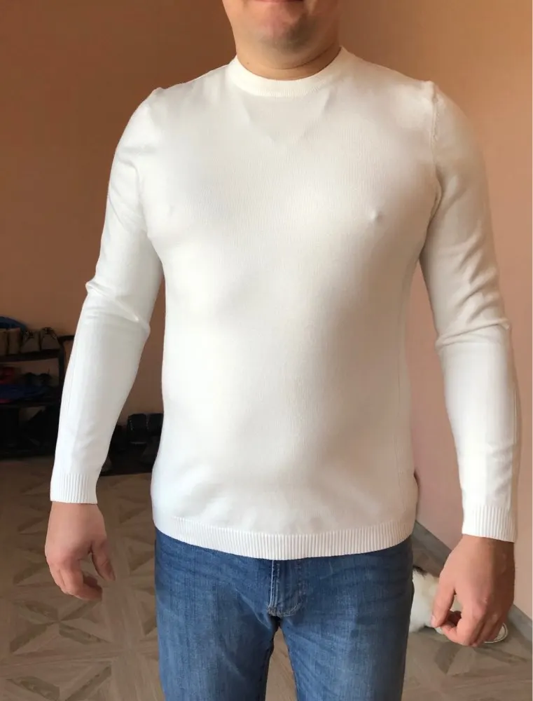 свитер отличный по качеству нитки не торчат нигде,правда рукава прямо совсем в обтяжку,может со временем растянутся посмотрим,а так все хорошо с размером угадал,мой рост 189 вес 90