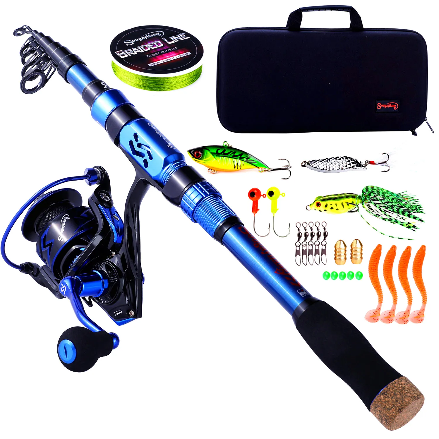 Телескопическая рыболовная удочка Sougayilang, спиннинг с катушкой, сумка для приманки, из углеродного волокна, 1,8-2,7 м