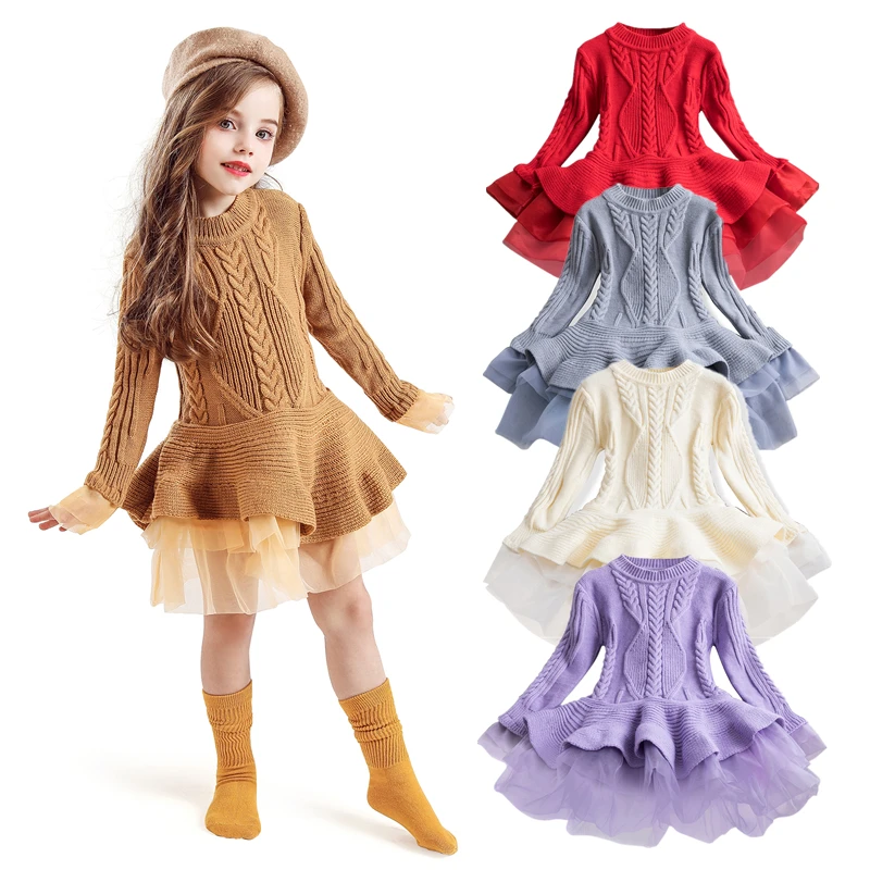 Зимнее платье для девочек, плотное теплое вязаное платье-свитер, рождественское платье для девочек, детское праздничное бальное платье, новогодняя Детская одежда