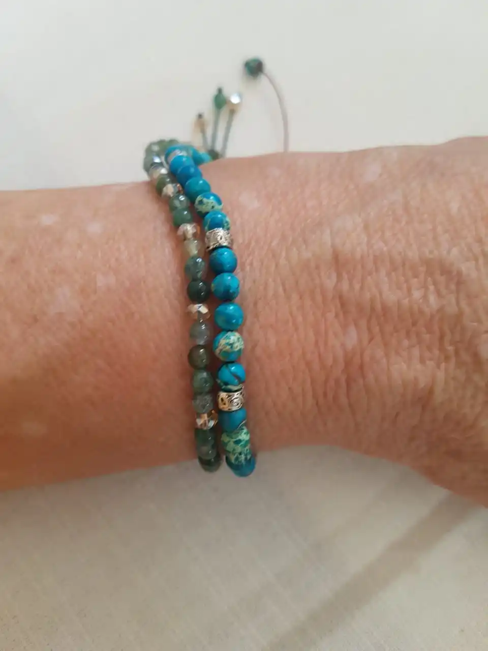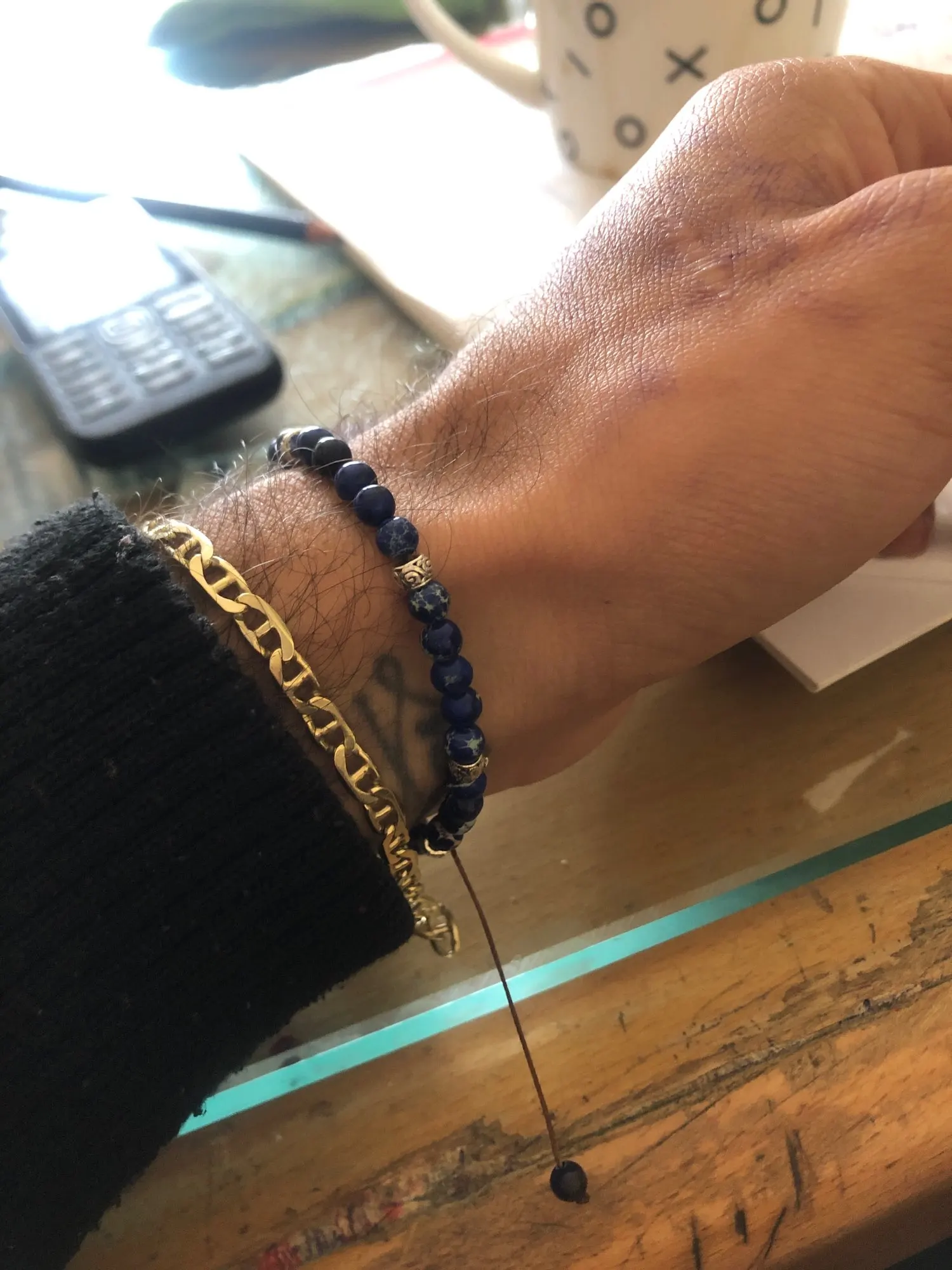 Быстро растягивается нитка, приходиться стягивать по руке. Браслетик отличный.