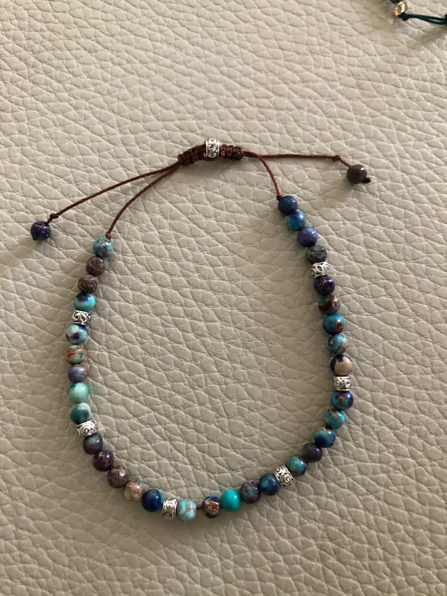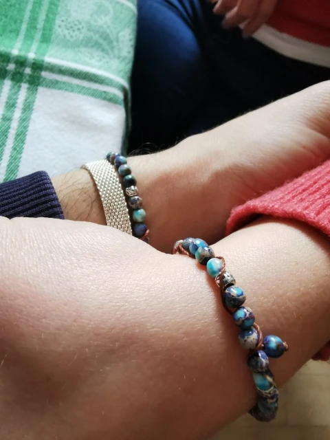 Ой, ну люблю я всякие побрекушки хуюшки. Товар соответствует описанию, камушки маленькие и миленькие, каждая металлическая вставка разрисована и вообще браслет хорошо смотрится. Цвет показался чуть темнее чем на картинке. На тоненьком запястье смотрится красиво. Берите) я за)