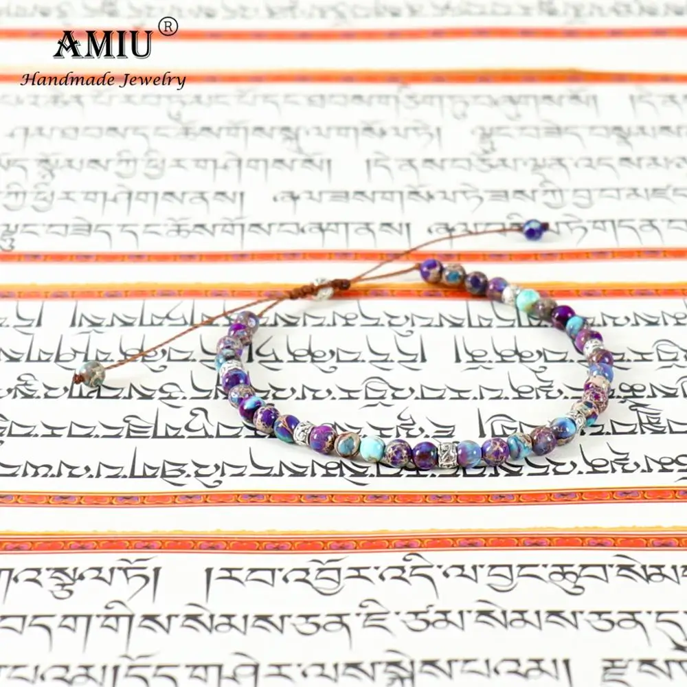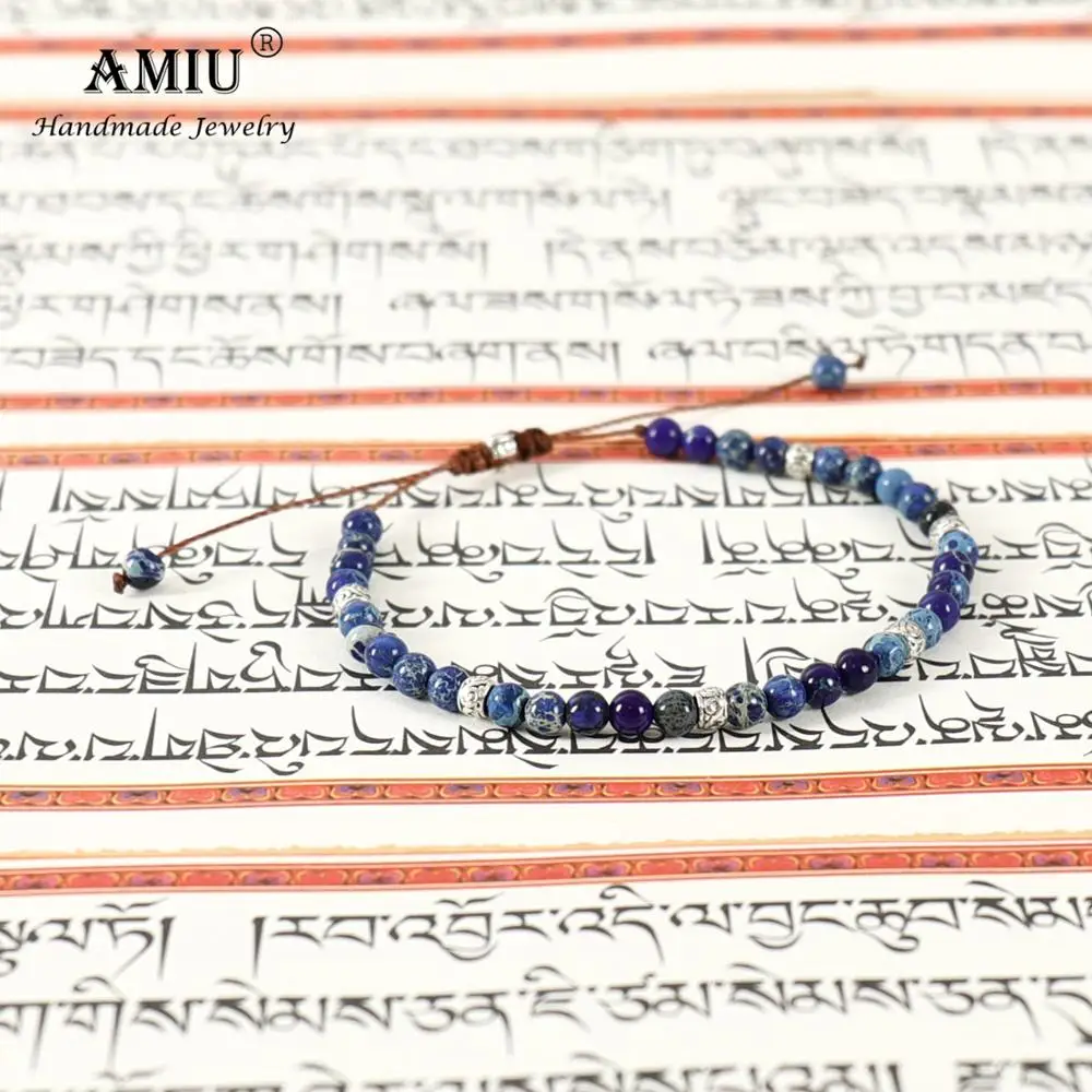 Браслет из тибетских каменных бусин AMIU, эластичный браслет для мужчин и женщин, браслеты с кристаллами для йоги, чакры