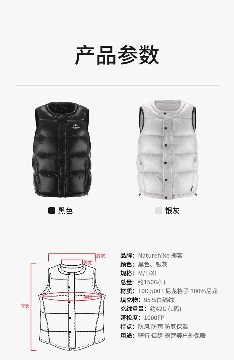 Naturehike зимняя ультра-светильник пуховой жилет для мужчин женщин светильник лошадь бронированный 95% гусиный пух 1000FT куртка без рукавов