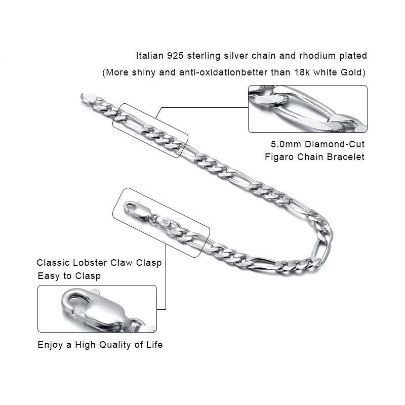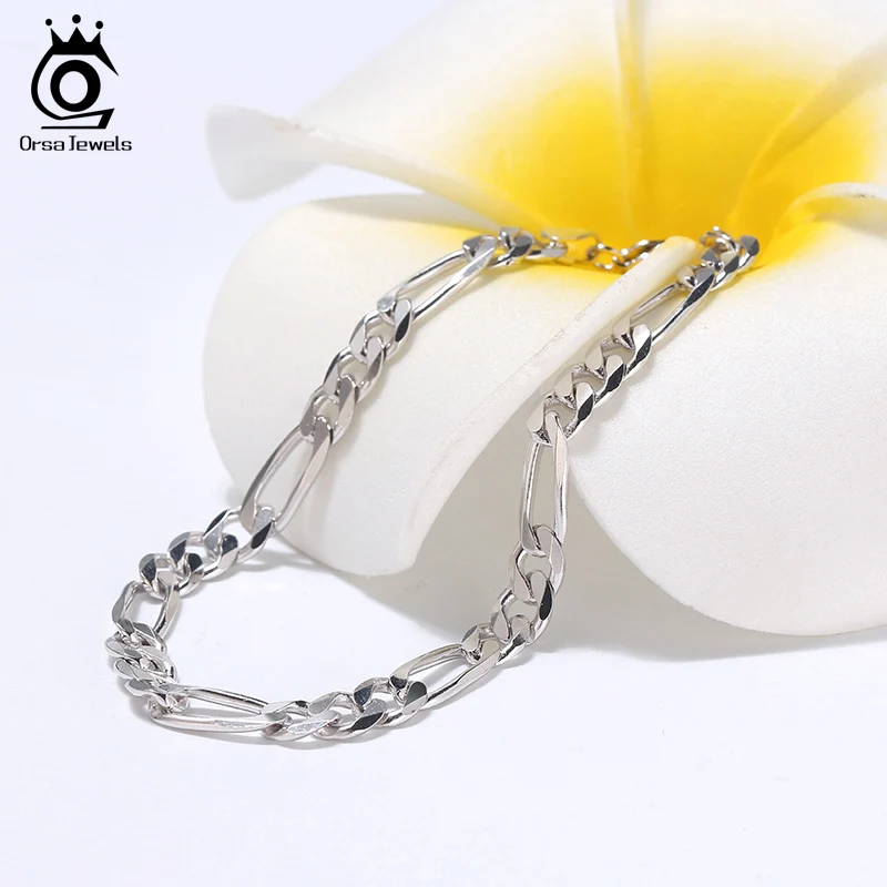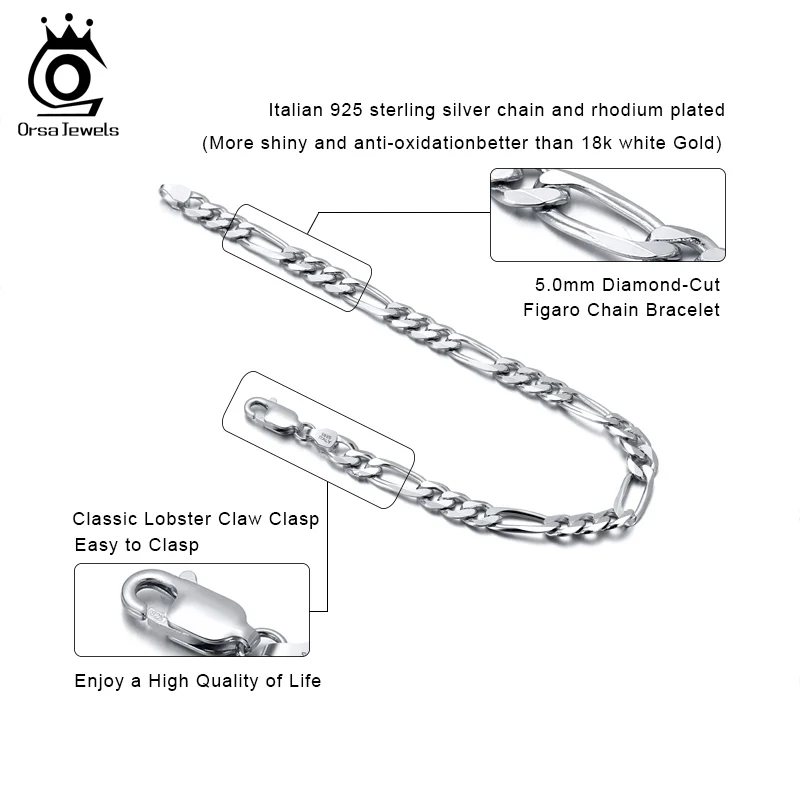 ORSA JEWELS итальянский Браслет из стерлингового серебра 925 пробы для мужчин 5,0 мм бриллиантовая огранка Фигаро браслет-цепочка для женщин широкий толстый браслет SB66