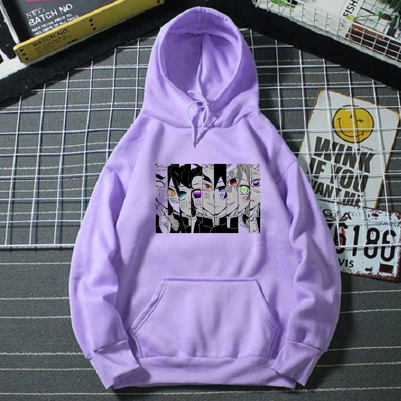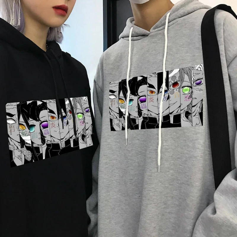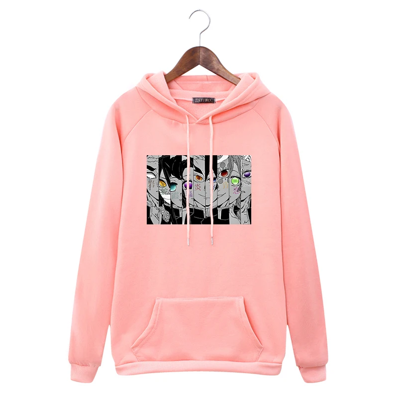 Женская толстовка с капюшоном Demon Slayer, уличная одежда большого размера в стиле Харадзюку, с забавным принтом из японского аниме
