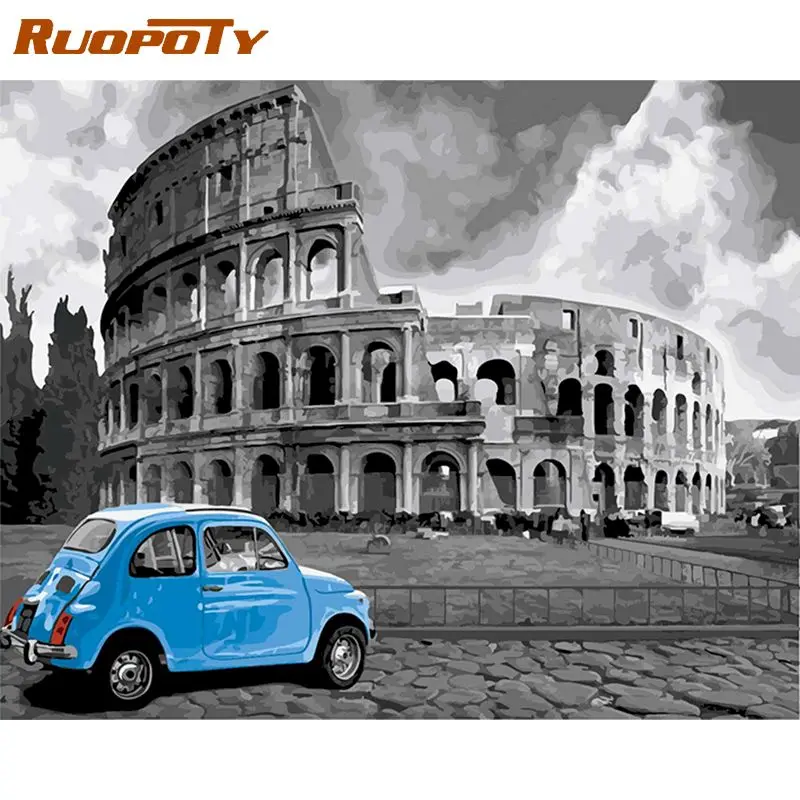 RUOPOTY рамка DIY Краска ing по номерам картина по номерам пейзаж настенная акриловая краска для домашнего декора искусство