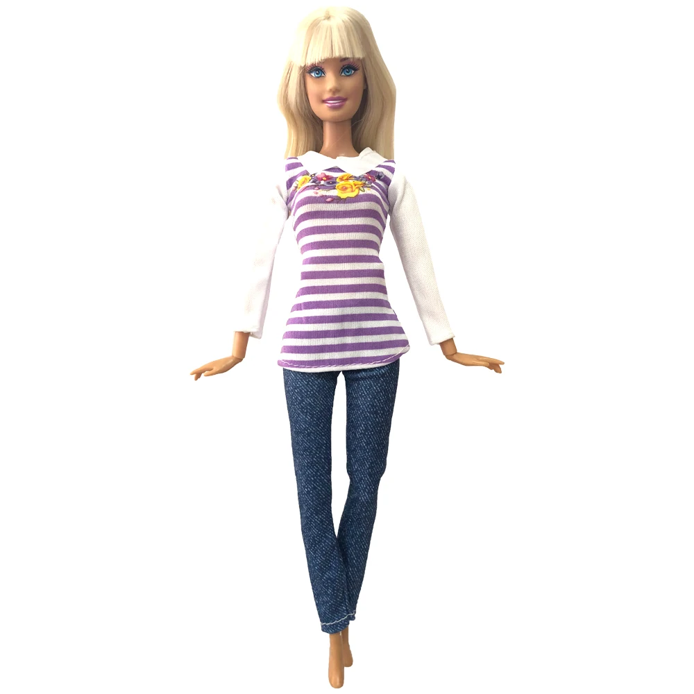 NK 1x Одежда для куклы, модная Фиолетовая рубашка с длинными рукавами, повседневная одежда, джинсы для куклы Барби, аксессуары, милая детская игрушка для девочек 278J2 7X