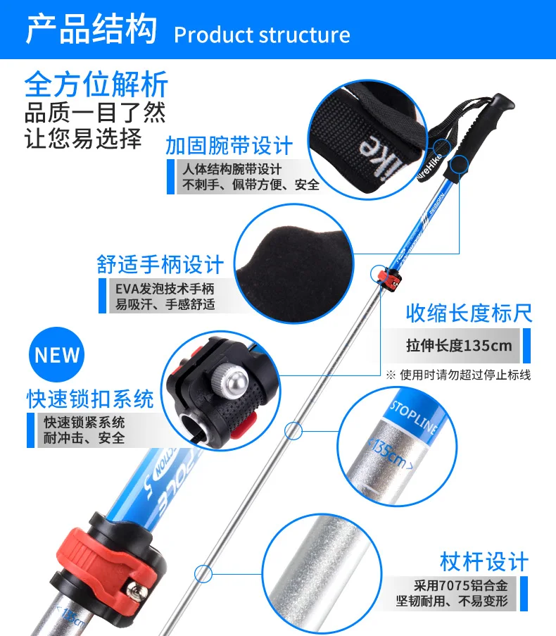 Naturehike высокого качества на открытом воздухе Ultra-светильник EVA ручка с 5 секциями Регулируемый трости палки для ходьбы, трекинга полюс ледоруба