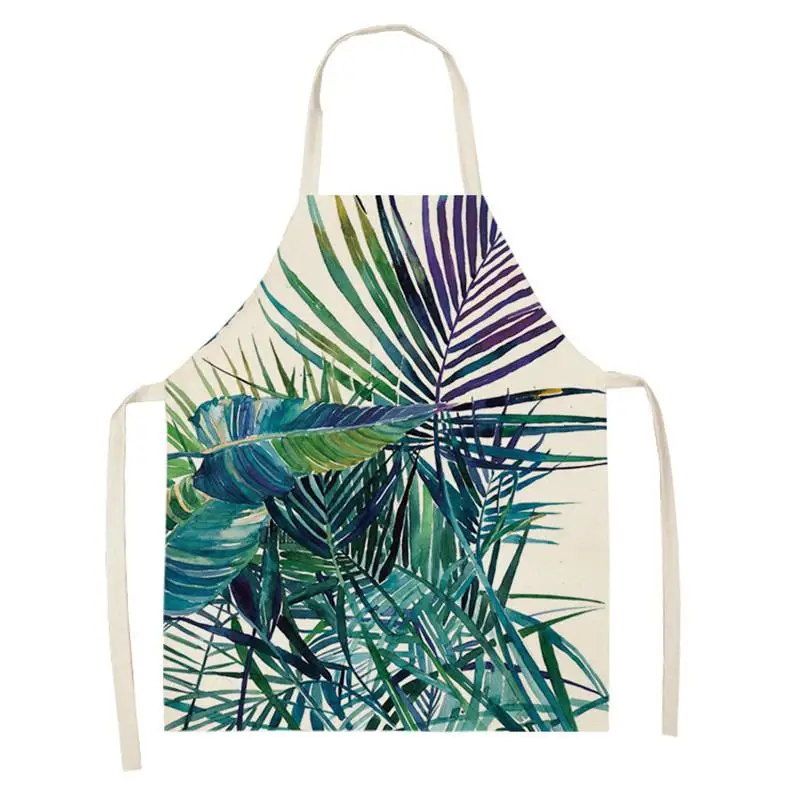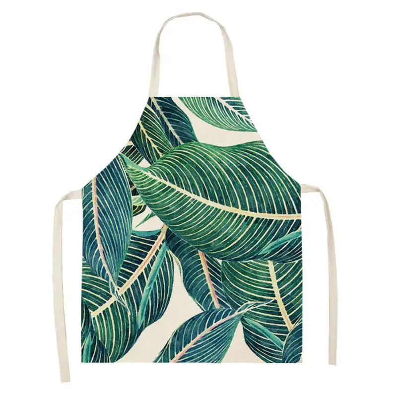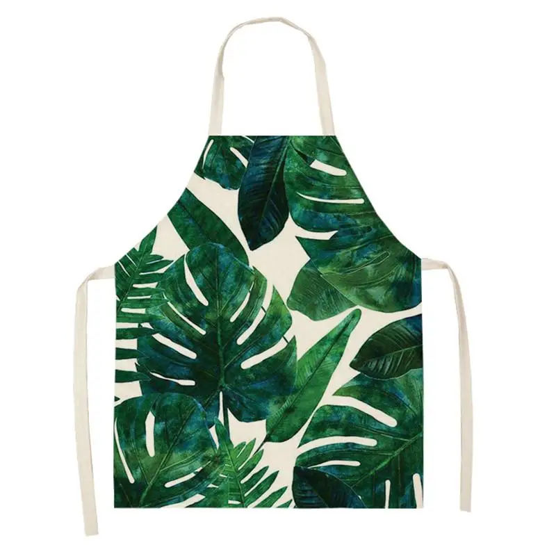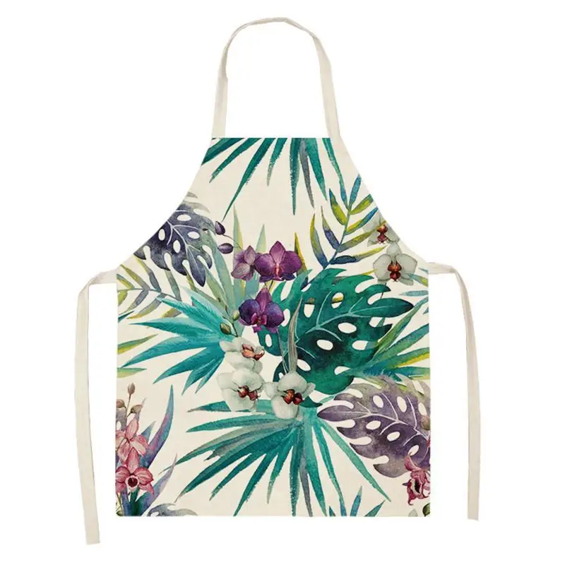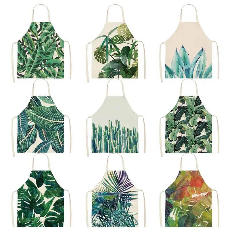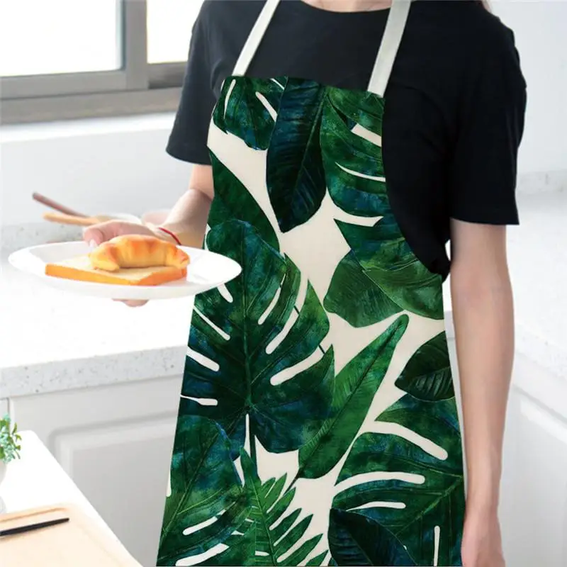 Фартуки из хлопка и льна с тропическим цветком монстеры для мужчин и женщин, фартуки для кухни, аксессуары для домашнего приготовления пищи, выпечки, уборки WQ08