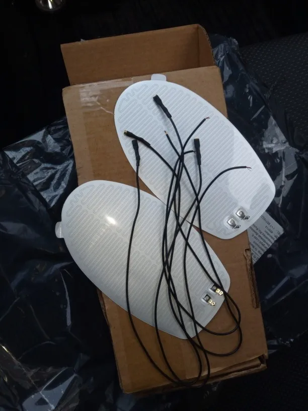 Доставка CDek, соответствует описанию, рабочие, при напряжении 13 В ток 0,65 А на каждом, сопротивление 17,5 Ом, греет неплохо. Размеры 145х80 мм.