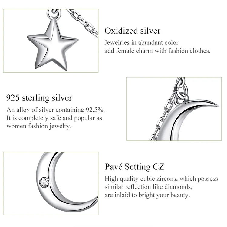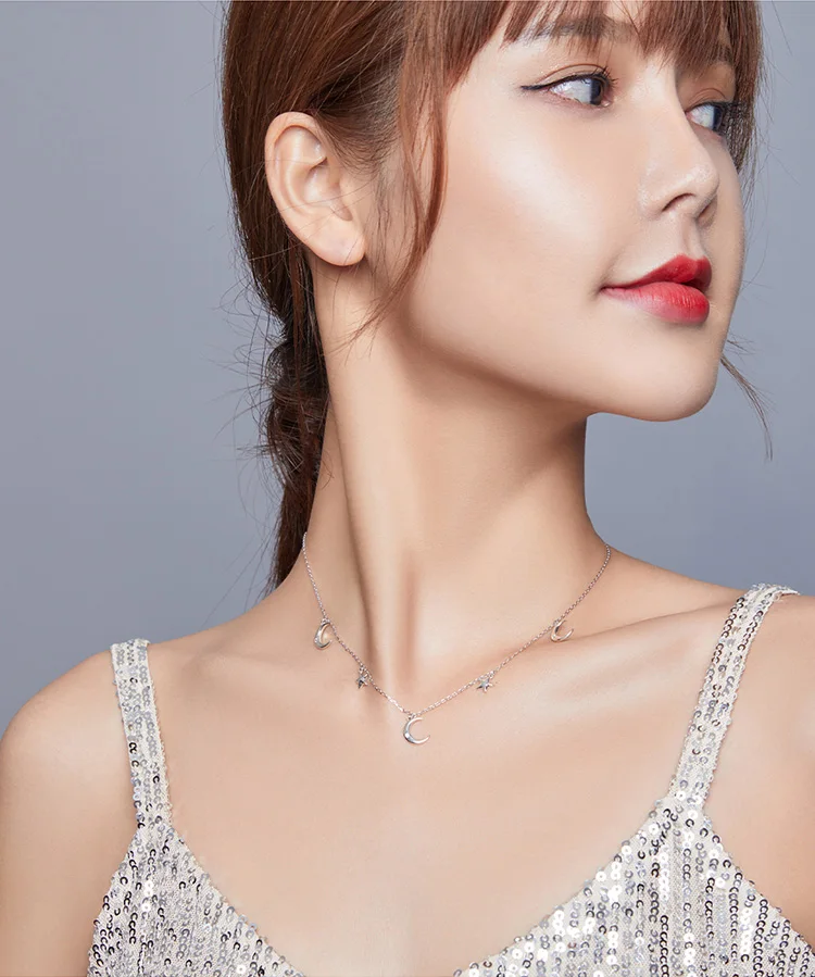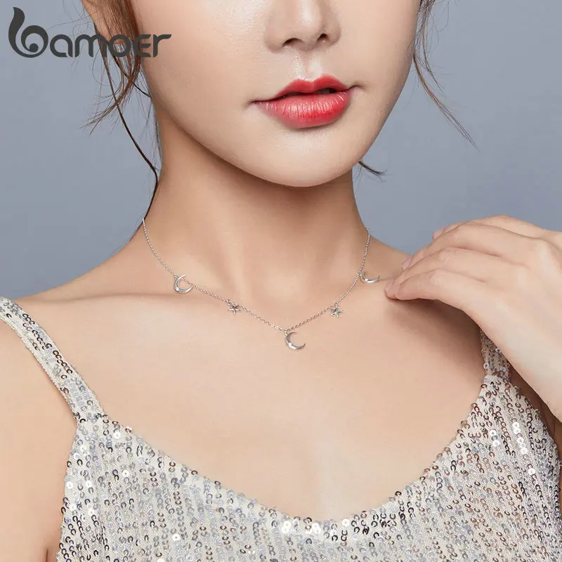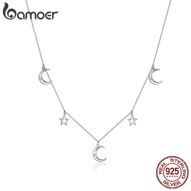 Bamoer Стерлинговое Серебро 925 пробы Луна и звезда кулон ожерелье для женщин цепочка ожерелья ювелирные изделия SCN411