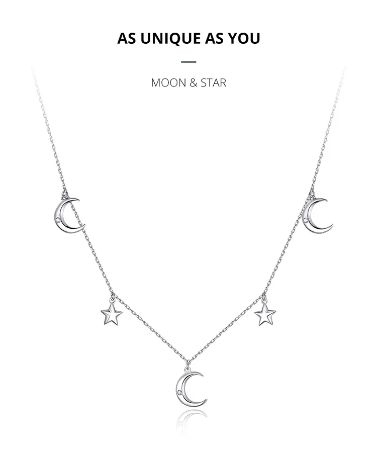 Ожерелье женское из серебра 925 пробы с подвеской в виде Луны и звезды