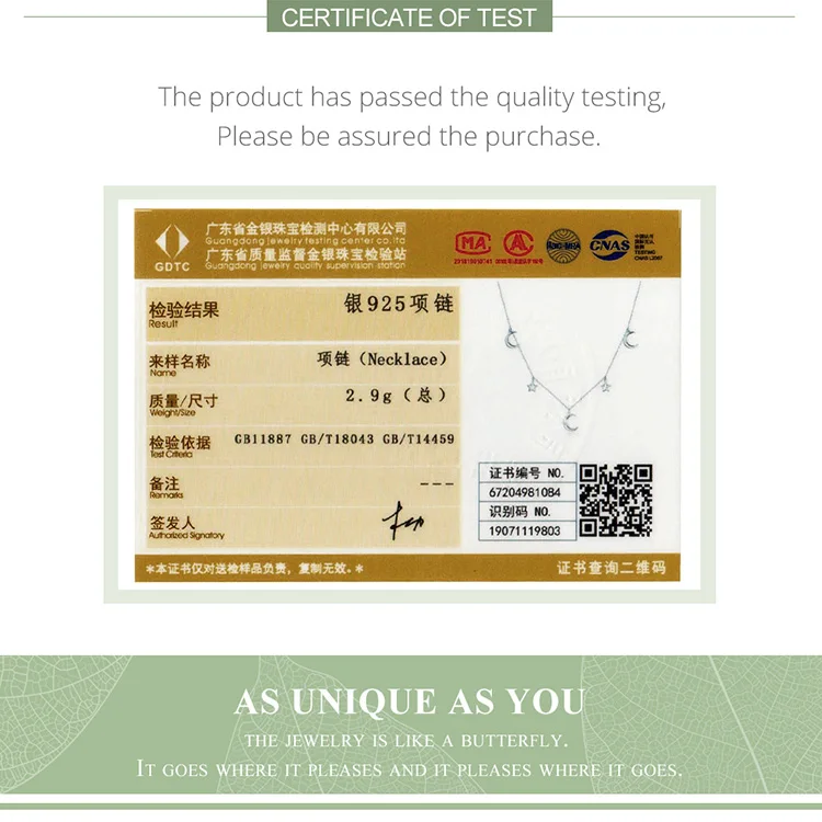 Колье-цепочка женское из серебра 100% пробы, с Луной и звездой, CQN411