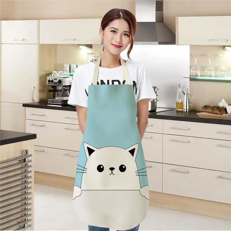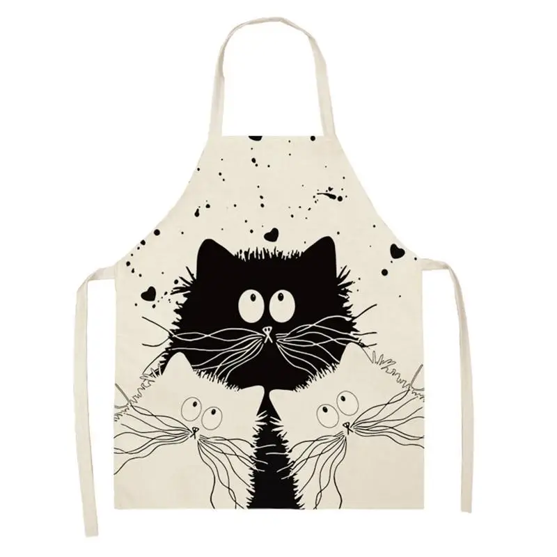 Кухонный Фартук из хлопка и льна, без рукавов, с принтом кошки, для...
