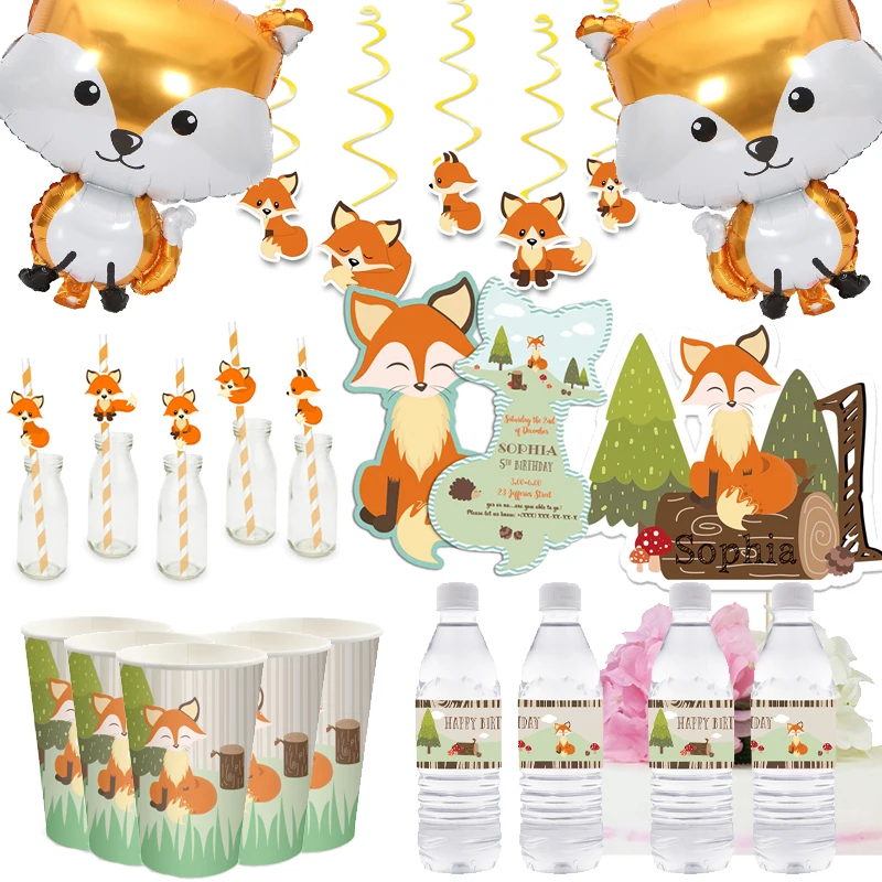 Лиса принадлежности для тематической вечеринки день рождения торт Топпер бумажные чашки лиса воздушные шары пригласительные соломинки бутылки этикетка сувенир коробка украшения для вечеринки